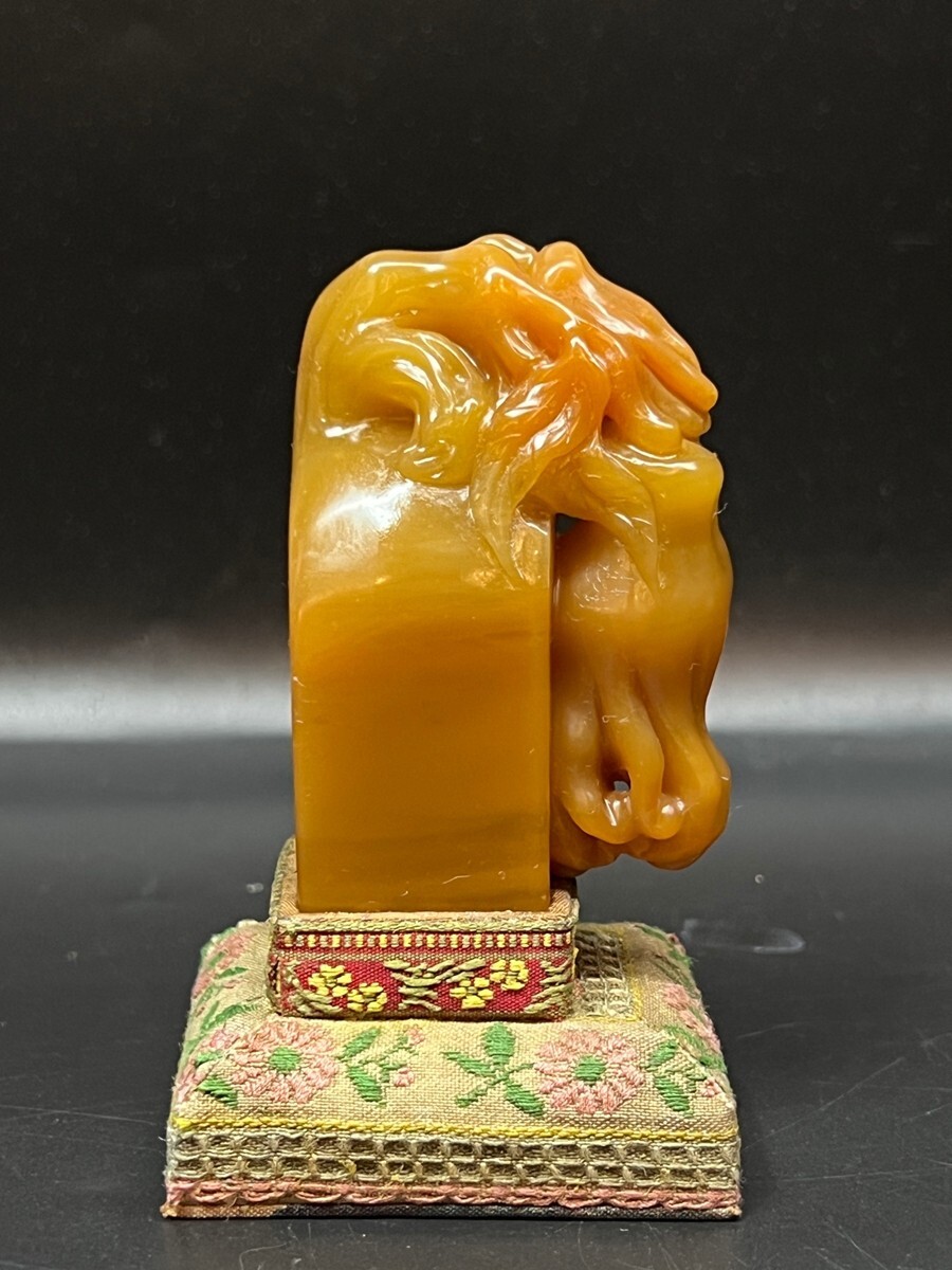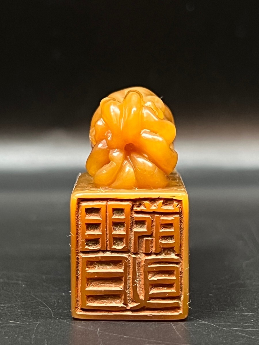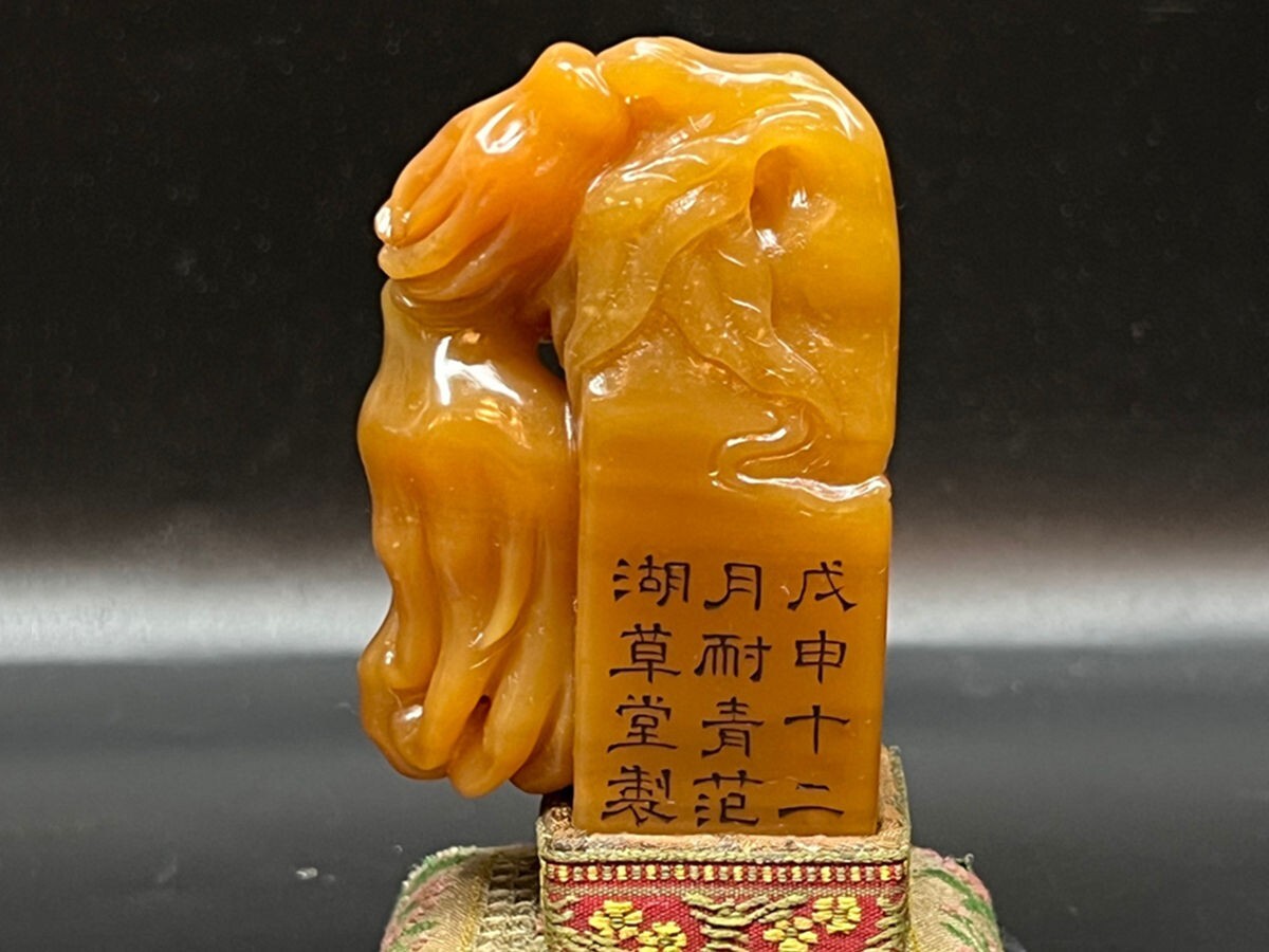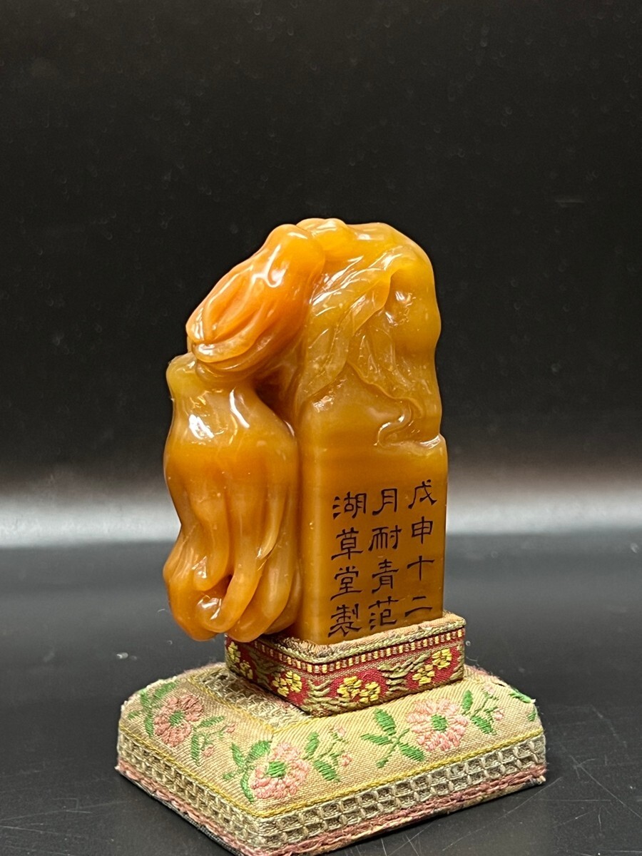 「清 耐青 范湖草堂製 老寿山石 田黄石彫り 仏手印章」極細工 擺件 古賞物 中国古美術 旧蔵出