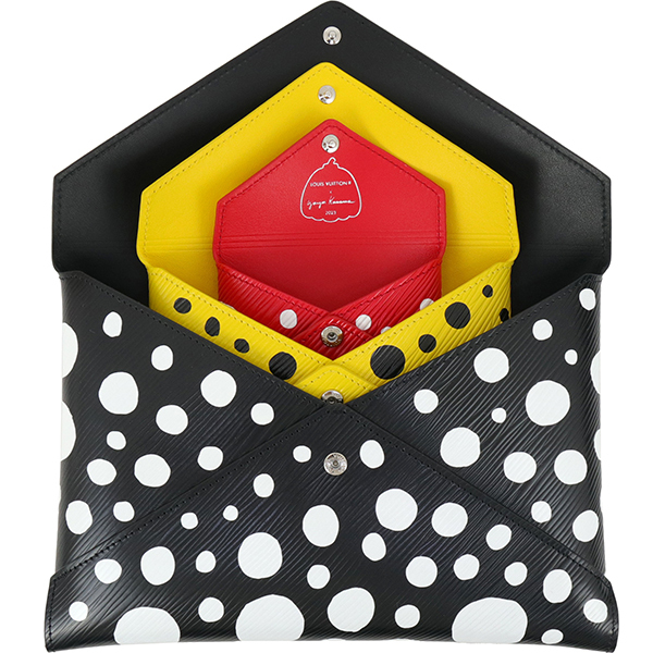 スタッフコメント | 草間彌生コラボの”インフィニティ ドット”のテーマにデザインされた【LV × YK キリガミ】でございます。 3つを一体化したポーチを、ブラック・イエロー・レッド、の3種類の配色。それぞれ大きいものに収納できるユニークな逸品でございます。 |