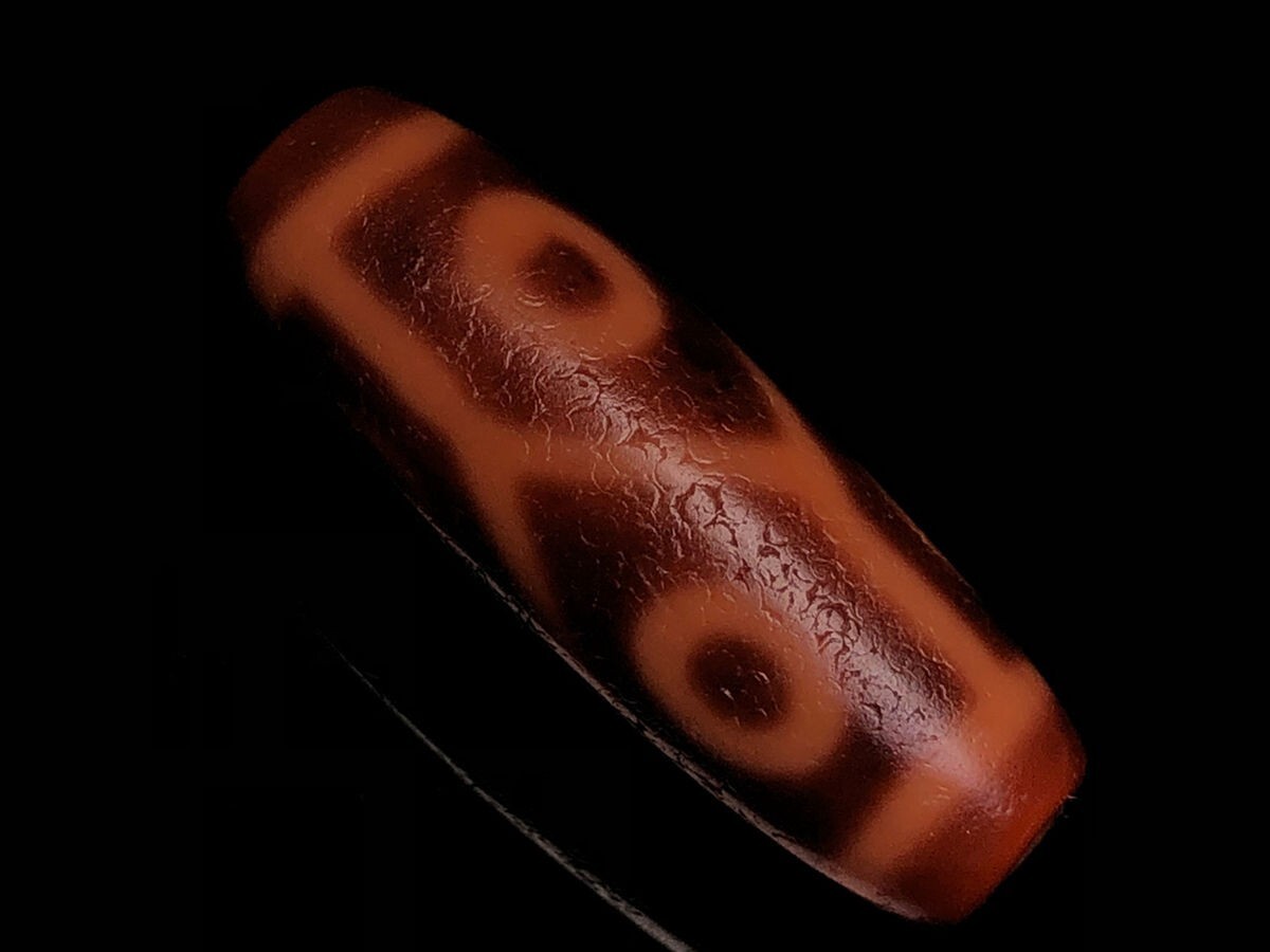 「時代物 藏區 瑪瑙彫り 竜甲六眼天珠」極細工 裝身具 賞物 中国古美術 旧蔵出