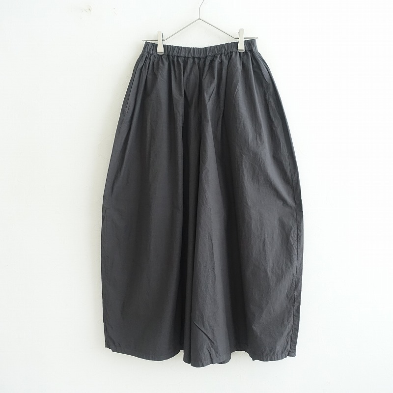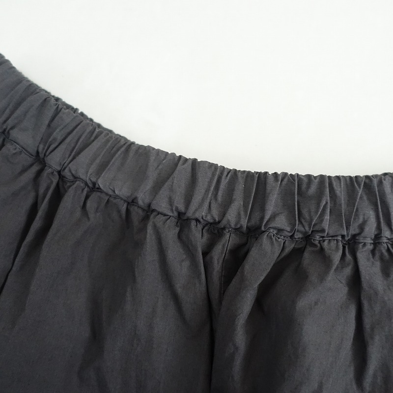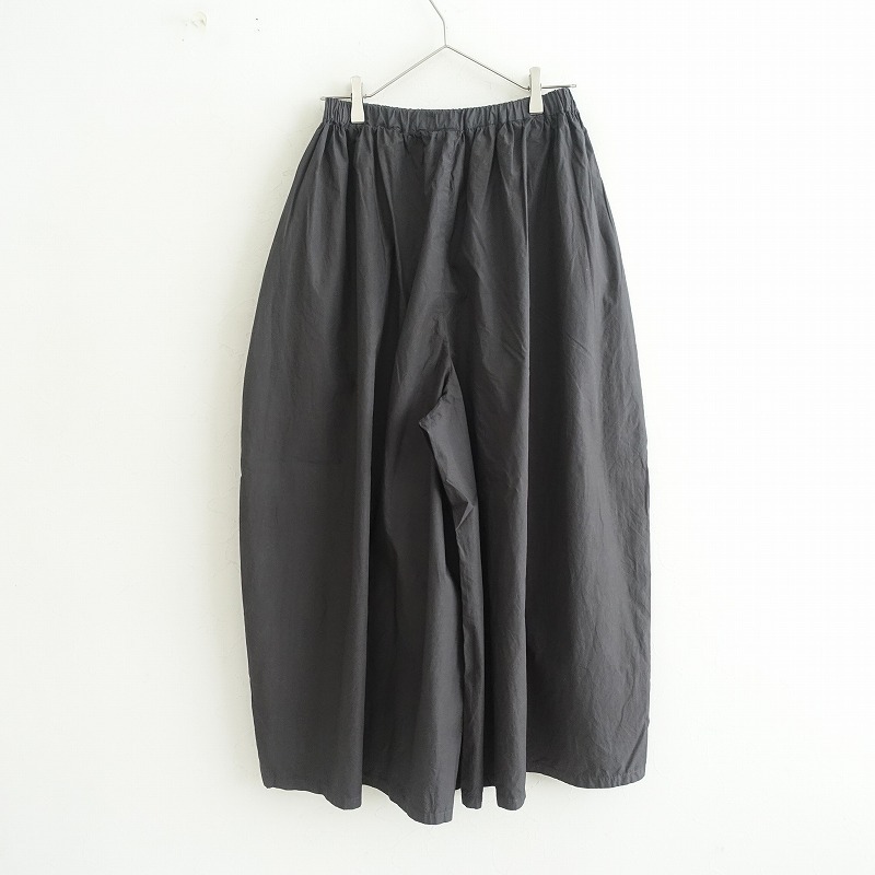 BEARDSLEYのコットンワイドイージーパンツです。カラーはダークグレーで、ハリのある布帛地です。ワイドデザインで、ウエスト総ゴム入り、腰両サイドにシームポケットがございます。 |
