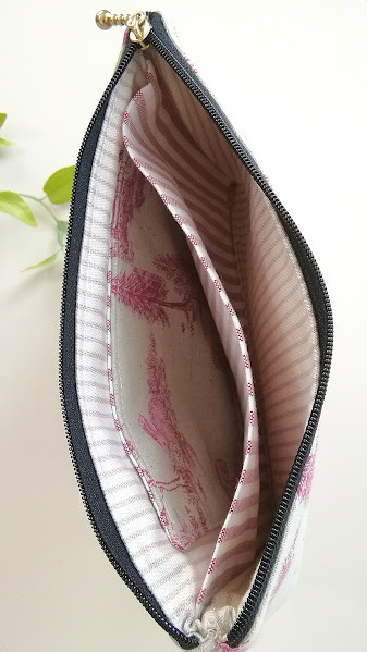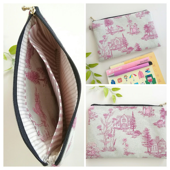 内側に仕切りとポケット(1個)を付けたフラットポーチです。