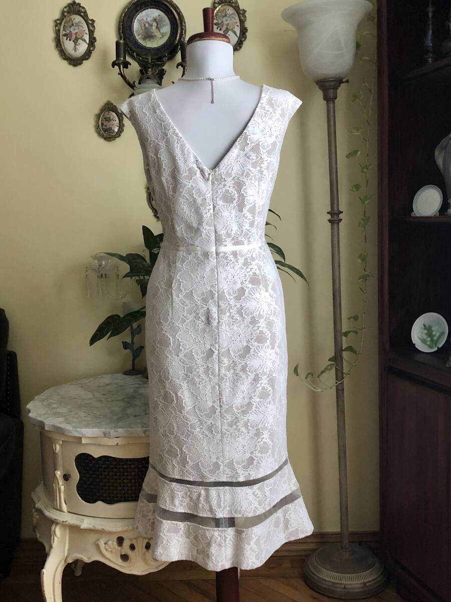 | 【ラルフローレン】より、素敵なレースのカクテルドレスです。 白いお花のレースが綺麗です。 ベージュの裏地がお花柄を惹き立てていますね。 ボートネックと肩に掛かるフレンチスリーブ気味のカットも素敵です。 ウエストにはバイアスリボンのトリムが入っています。 スカート裾にネットレース切替とフレアーが入ったマーメイドスカートです。 コットン混紡の上質なレースです。 ストレッチジャージ素材の裏地が付いています。 後ファスナーで開きます。 【状態】新品 【ブランド】Ralph Lauren 【サイズ】表示サイズ/us(アメリカ)10 日本対応サイズ目安/ 15号サイズぐらい *個人差がございます。必ず採寸をご参照ください。 【採寸】平置き採寸です。 肩幅47㎝、身幅51㎝、ウエスト42cm、ヒップ54cm、着丈112㎝(上身丈40cm+スカート丈72cm) *ウエストを除いて多少ストレッチします 【カラー】白地 【素材】コットン45%、ナイロン30%、エラスタン5% 【裏地の素材】ポリエステル95%、エラスタン5% 【着脱】後ファスナー |