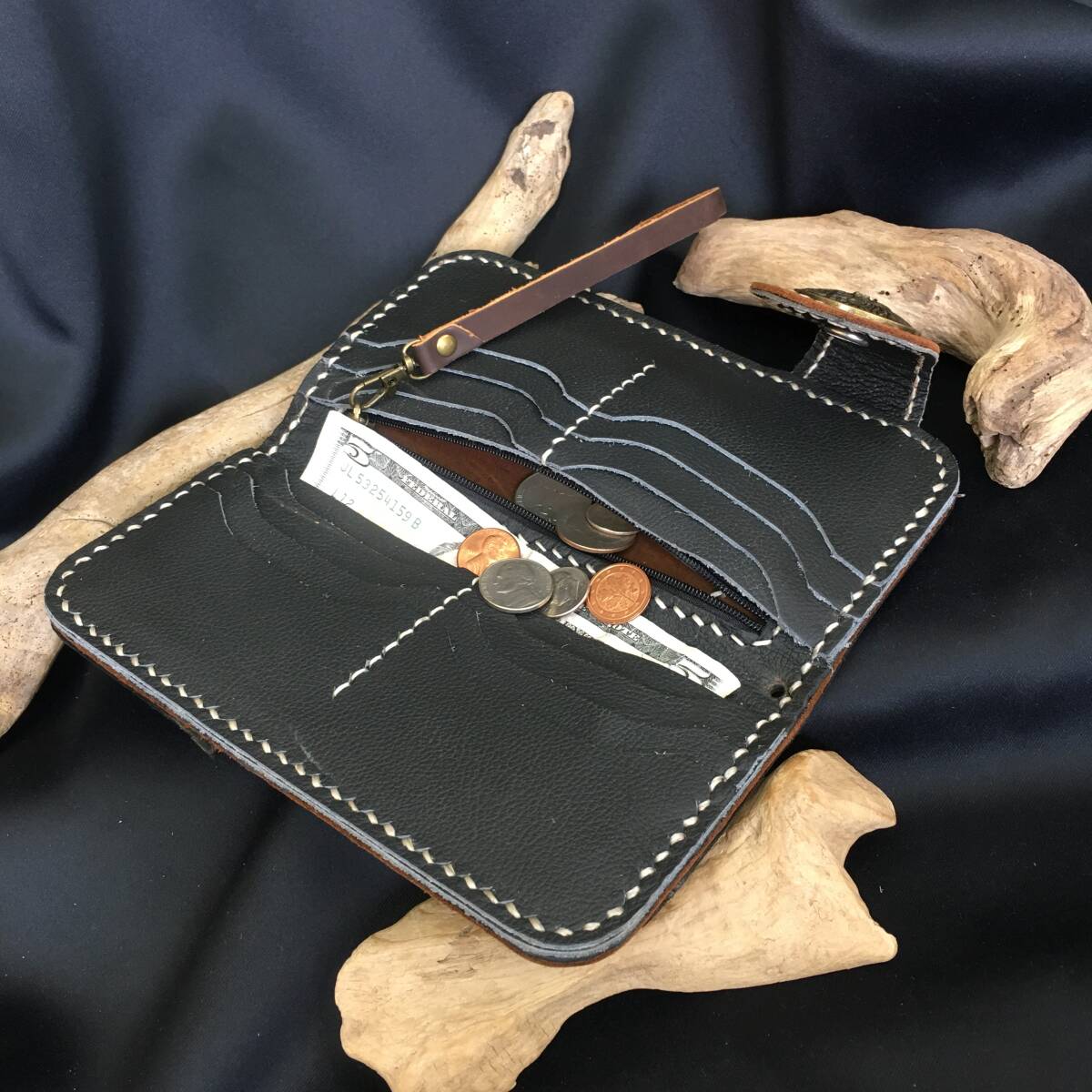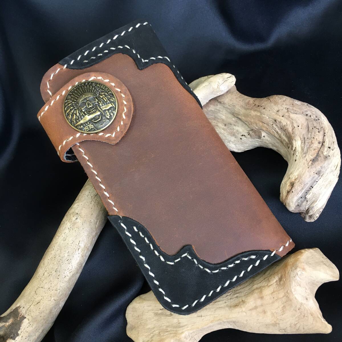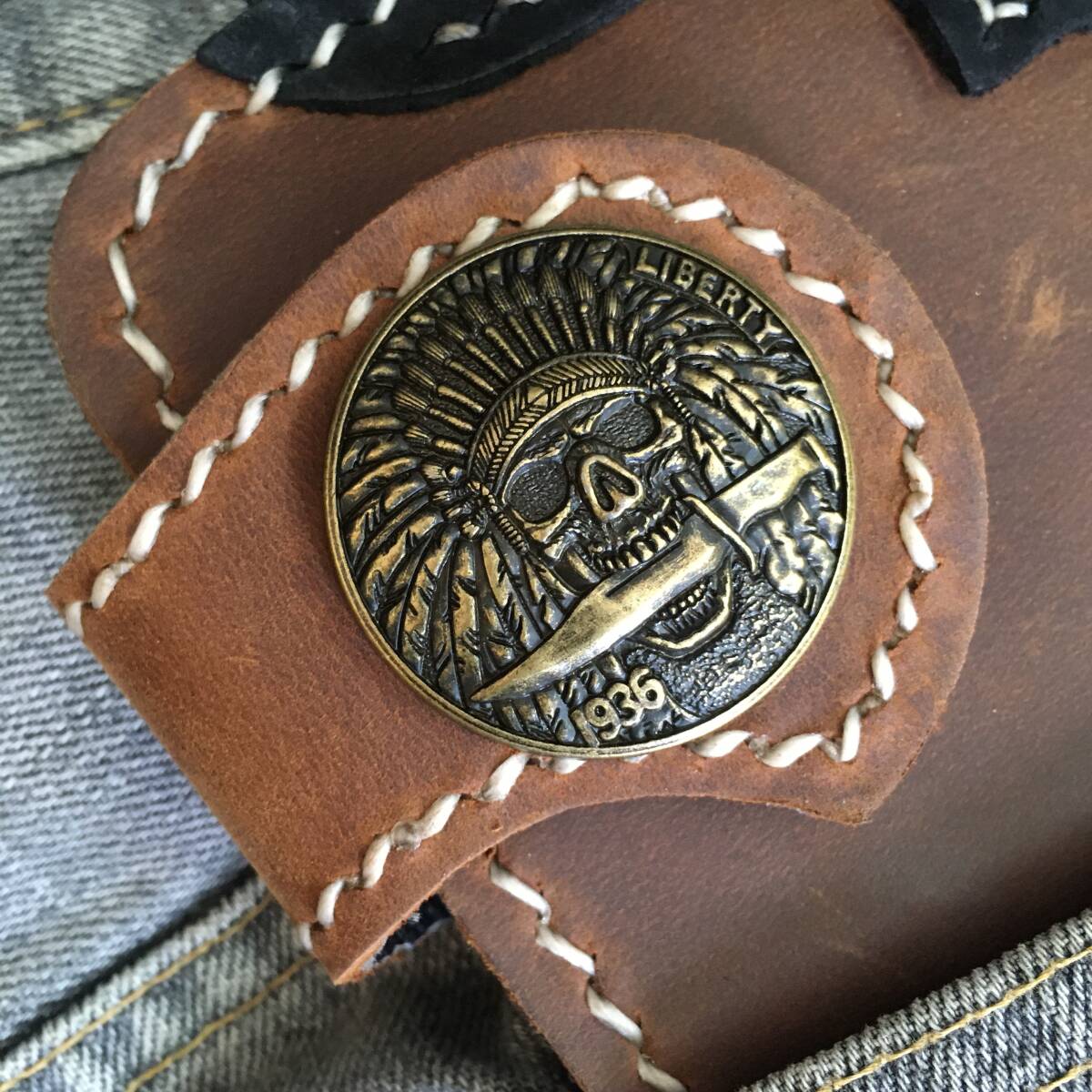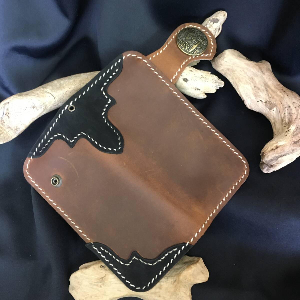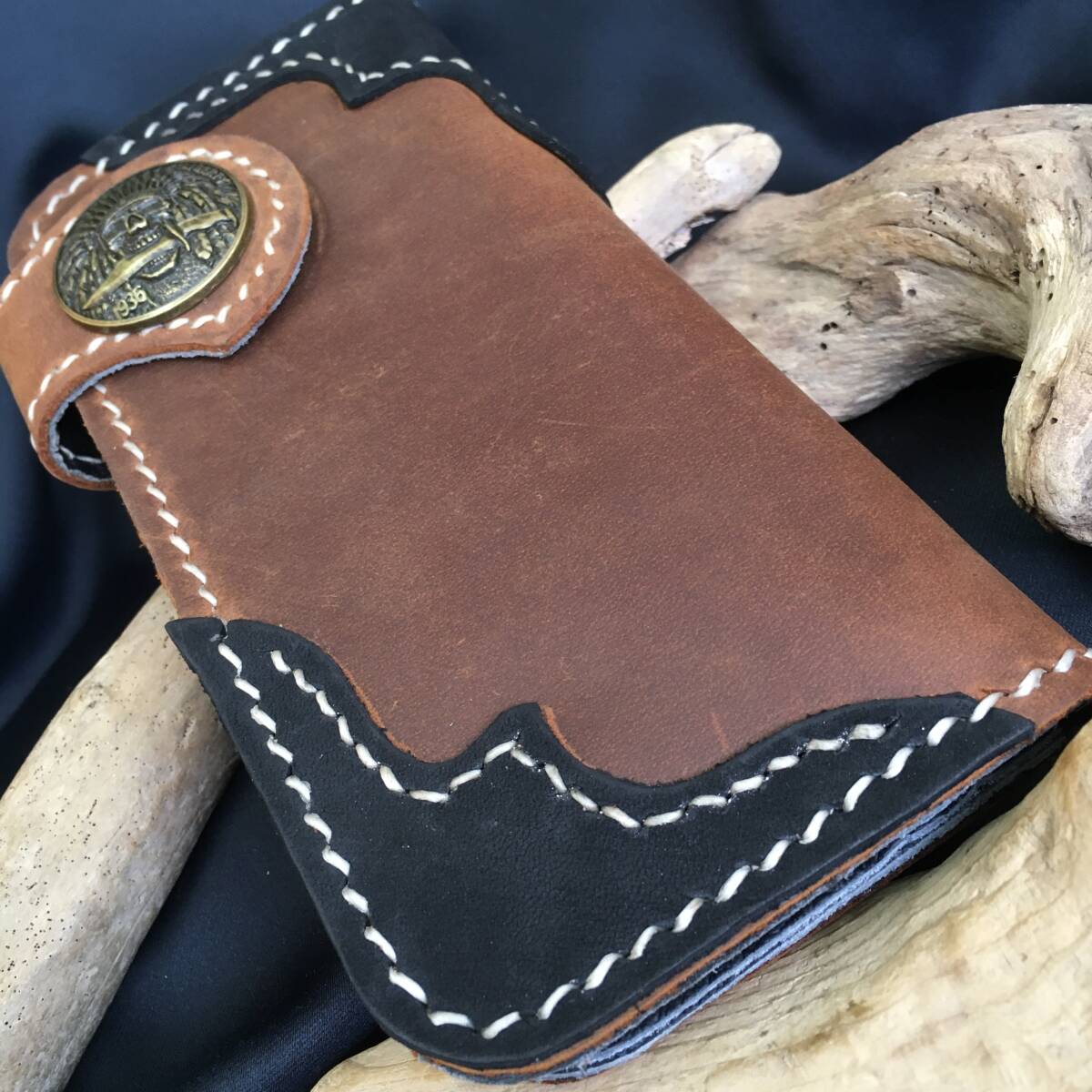 新品 本革レザー コンチョ長財布 メンズ ロングウォレット ブラウン 茶 ライダース アウトドア ツーリング バイカーズ 仕事用 送料無料 80