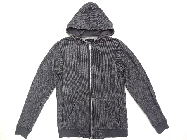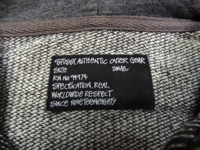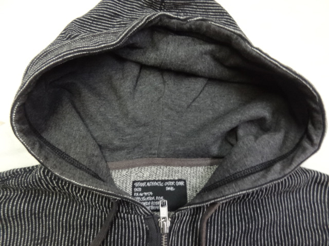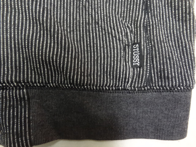 STUSSY ステューシー レア ごま塩 灰 黒 ストライプ ジップアップ パーカー ジャケット フーディ 黒シャン カラー コットン サイズ S 希少