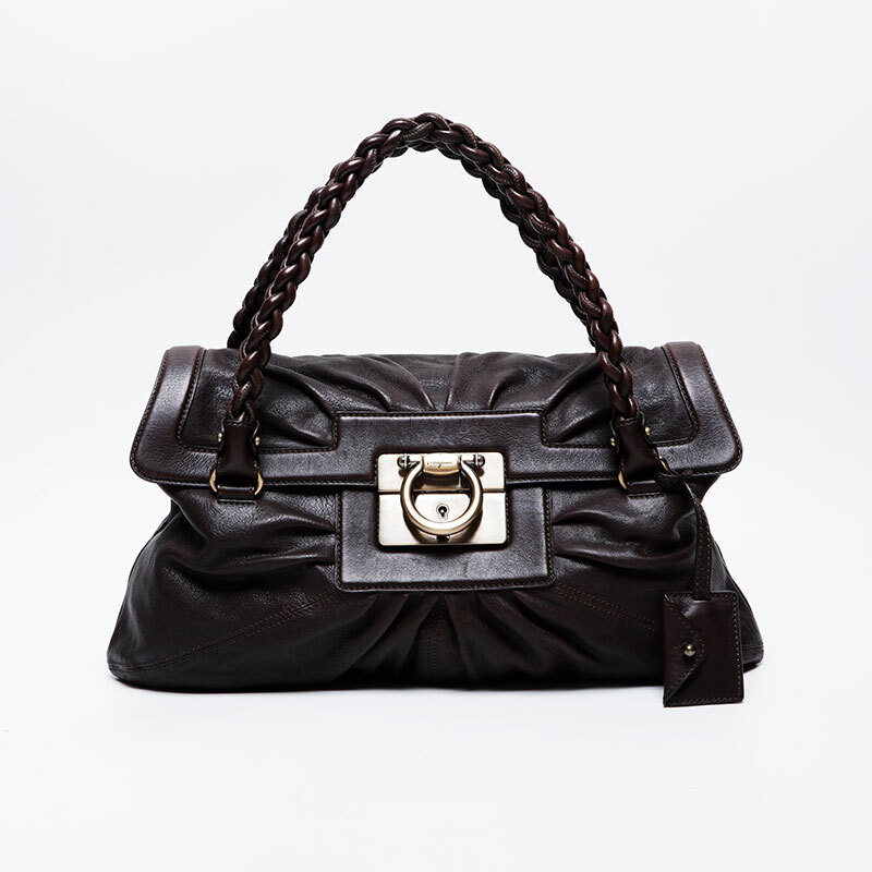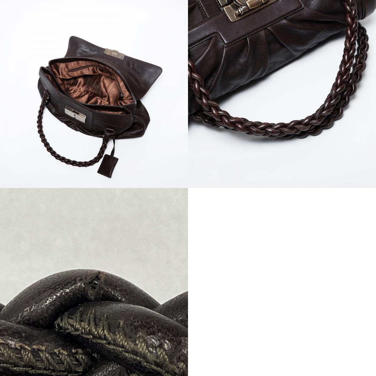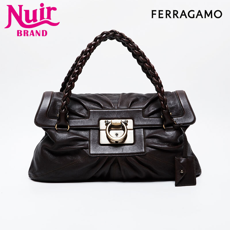 極美品 Salvatore Ferragamo ガンチーニ レザー ショルダーバッグ ブラウン