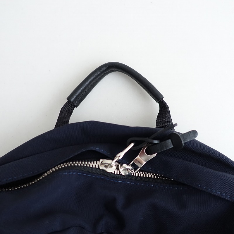 STANDARD SUPPLYのSIMPLICITY DAILY DAYPACKです。カラーはブラックで、開口はダブルファスナーです。表面にダブルファスナーポケットが1個、両サイドにもポケットが1個ずつ、内側にベルト留めのポケットが1個ございます。定価(メーカー希望小売価格)22,000円のお品物です。 |