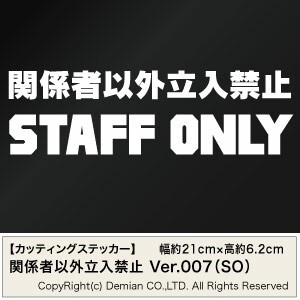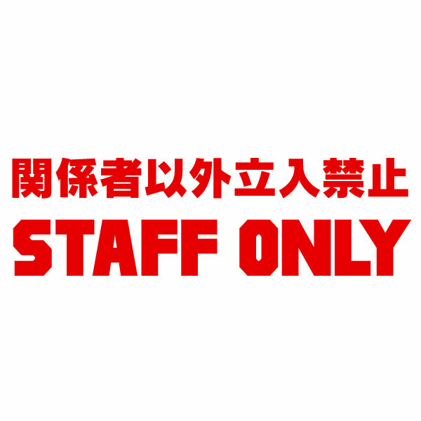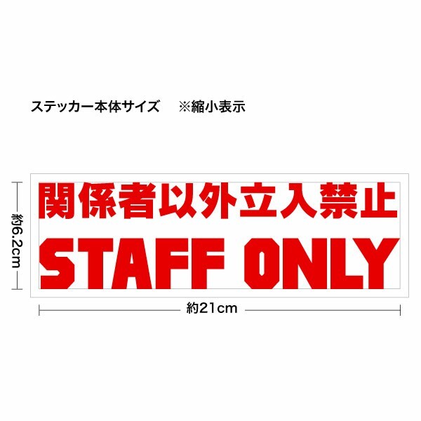 【関係者以外立入禁止 STAFF ONLY Ver.007 カッティングステッカー 2枚組 幅約21cm×高約6.2cm】 シートの材質は屋外看板用に使用されている耐光性・耐水性に優れた業務看板用シート(屋外耐候5-7年)ですので屋外でもご使用頂けます。 シートを切り抜いてアプリケーションシート(台紙)を付けて、すぐに貼れる状態で発送致します。万一貼付けに失敗しても安心の2枚組となります♪※シート切り抜き作業等、1枚ずつハンドメイド品である事ご了承下さい。■サイズ:幅約21cm×高約6.2cm■素材:屋外看板用シート、和紙アプリケーションシート■簡単な貼り方の説明書■製作:日本※ステッカーは屋外看板用のシートです。粘着性が高いので、1週間もすると強力にくっつきます。車やバイク等大切なものに貼るときは自己責任において十分注意して貼って下さい。※シート切り抜き作業等、ハンドメイド品である事ご了承下さい。【関連キーワード】カッティングシート 切り文字 ディスプレイ 業務用ウインドー ステッカー 防水 立ち入り禁止 立入り禁止サイン スタッフオンリー 立入禁止 STAFFONLY