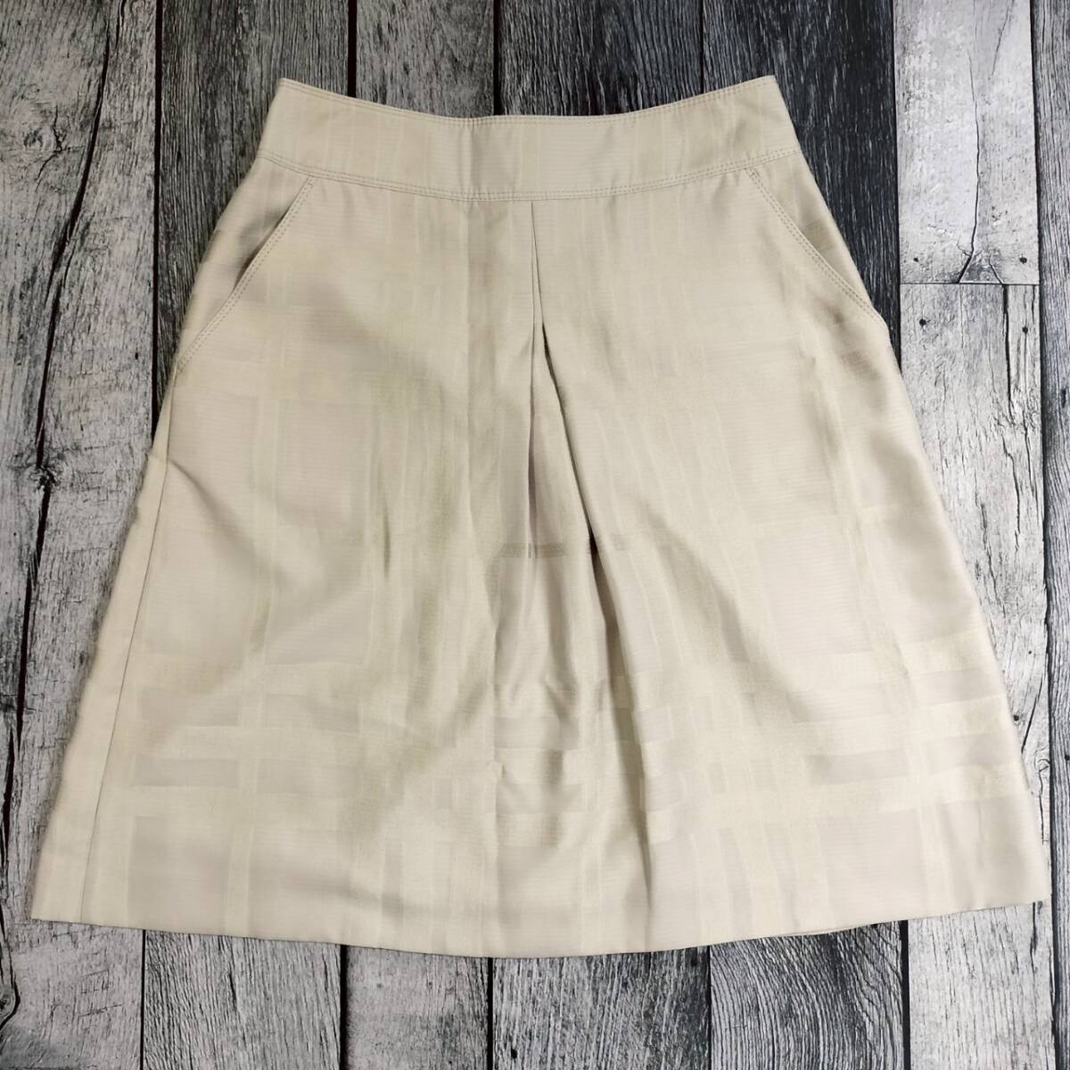 上品な風合い BURBERRY LONDON バーバリー ロンドン レディース 膝下 スカート ベージュ 日本製 サイズ40 Mサイズ 9号 チェック柄 上質素材