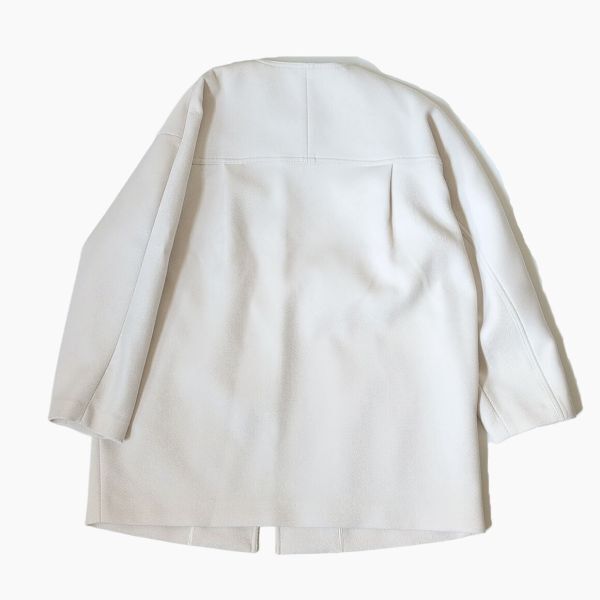 | コメント | 畝のある、肉厚のツイル素材を用いたノーカラーコート ポケット×2 構築的なシルエットがポイントのミドル丈コート ユーズドになりますが、特筆すべき難点はありません。 |