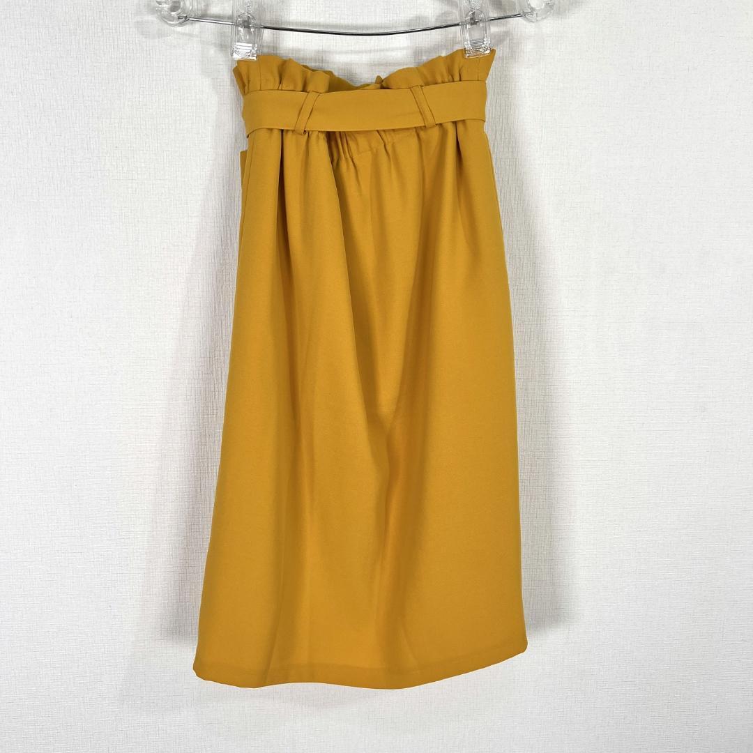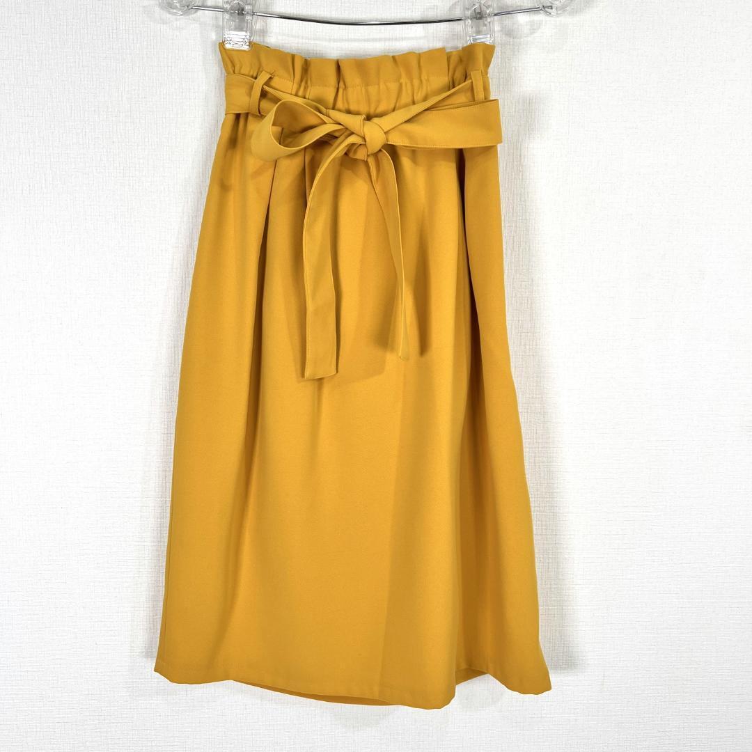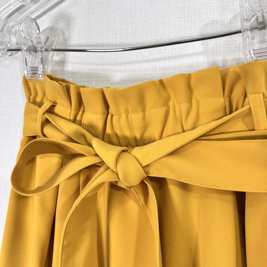 女性用のマスタードイエロー系のウエスト紐付きスカートです。ウエストはゴムと紐ベルトで調整可能です。中古品ですが目立つような傷や汚れもなくまだまだ使っていただけます。古着 インディヴィ 株式会社 ワールド