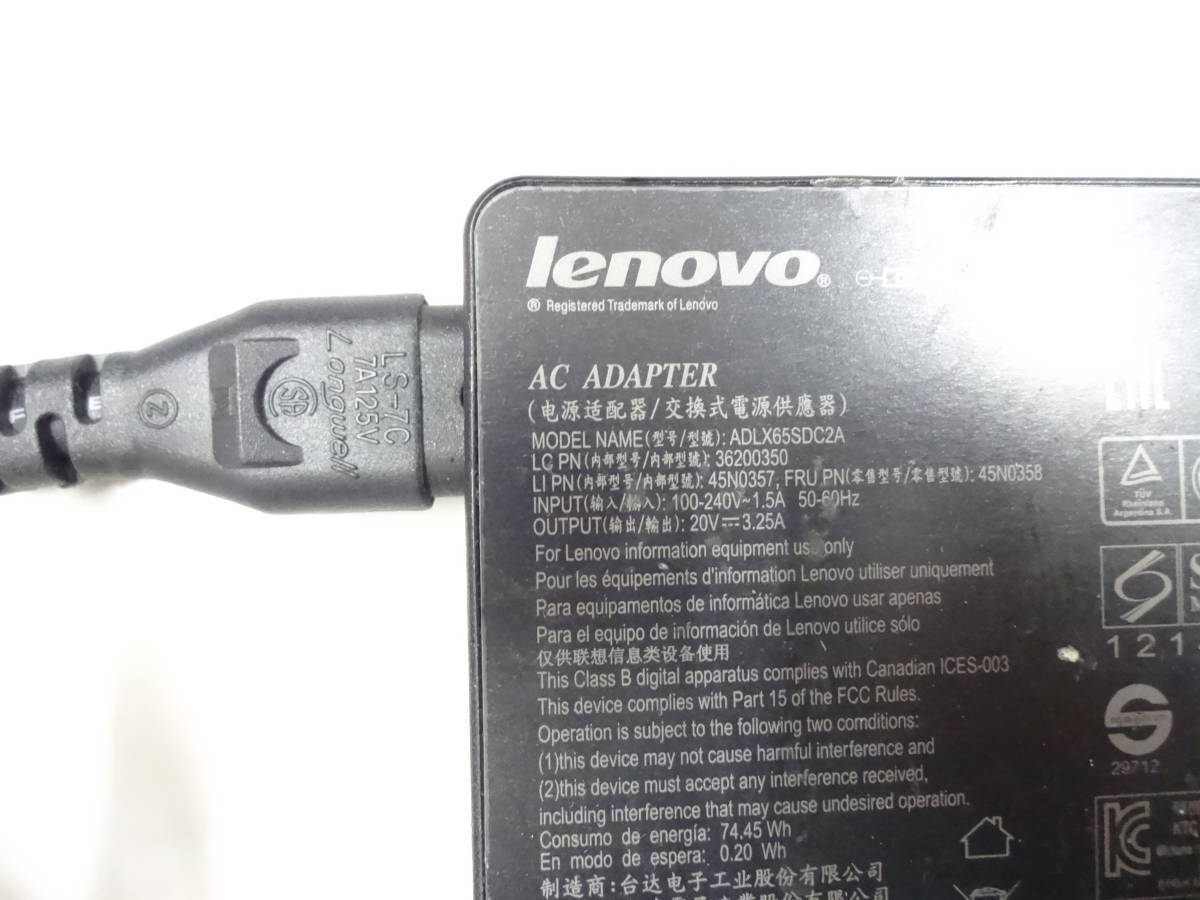 lenovo 角形ACアダプタ ADLX65SDC2A ADLX65SLC2Aなど 20V 3.25A 65W メガネケーブル付き 中古動作品