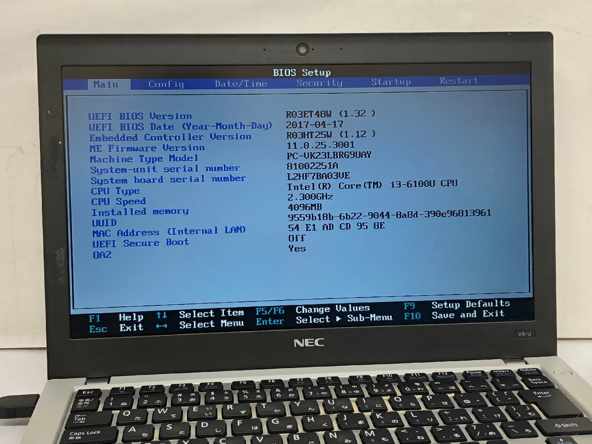 ジャンク/ NEC PC-VK23LBRG9UAY Intel Core i3-6100U メモリ4.1GB ストレージ無し 【K20448】