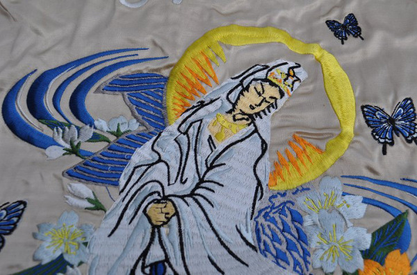 スカジャンの柄はほとんどがアメリカ人から見た日本(アジア)のイメージを刺繍で描かれています