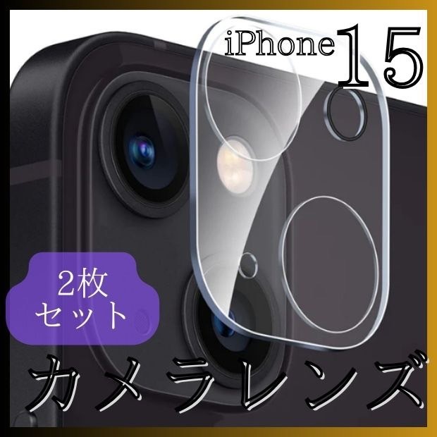 iPhone15 15Plus カメラレンズカバー ガラス 保護 2個 クリア