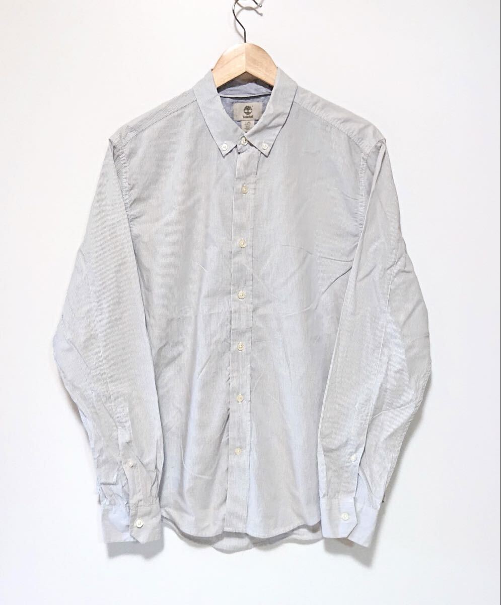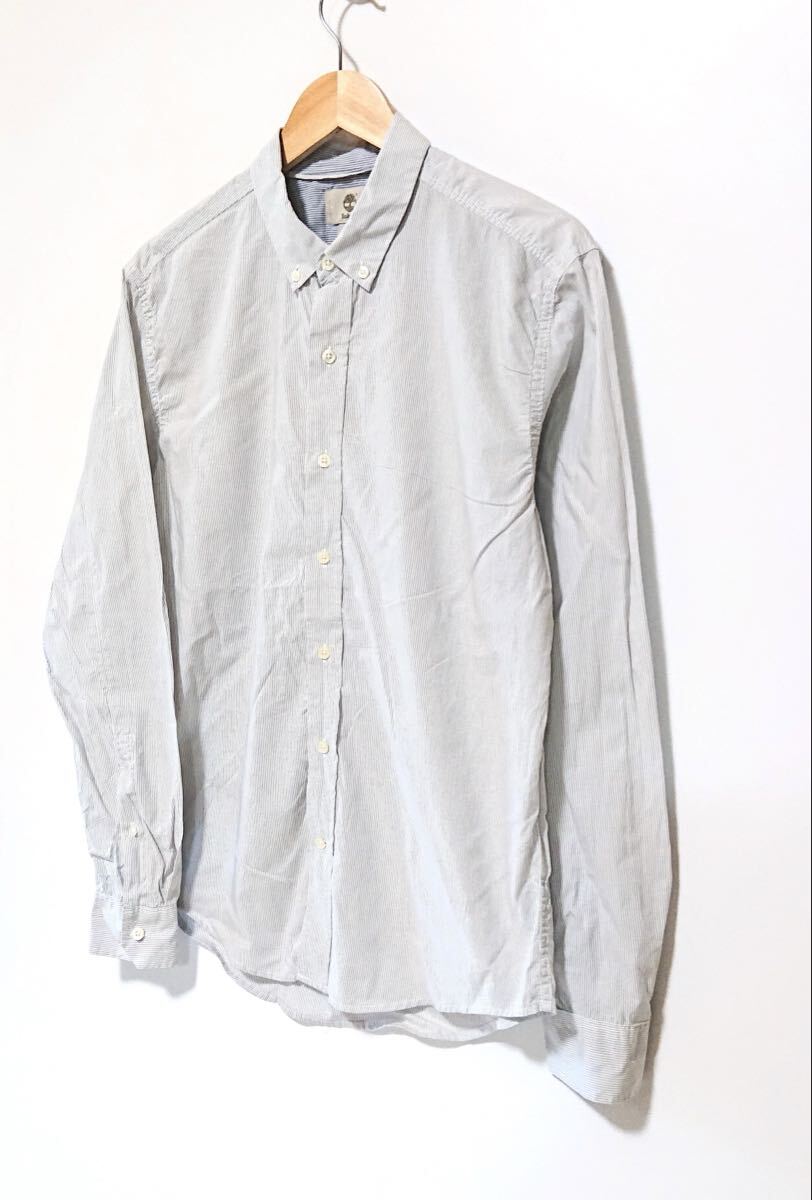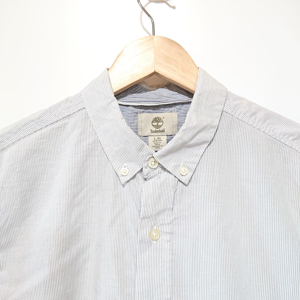 h4148gg Timberland(ティンバーランド) サイズL SLIM FIT ストライプ グレー系 メンズ オフィス ビジネス ボタンダウン さわやか シンプル