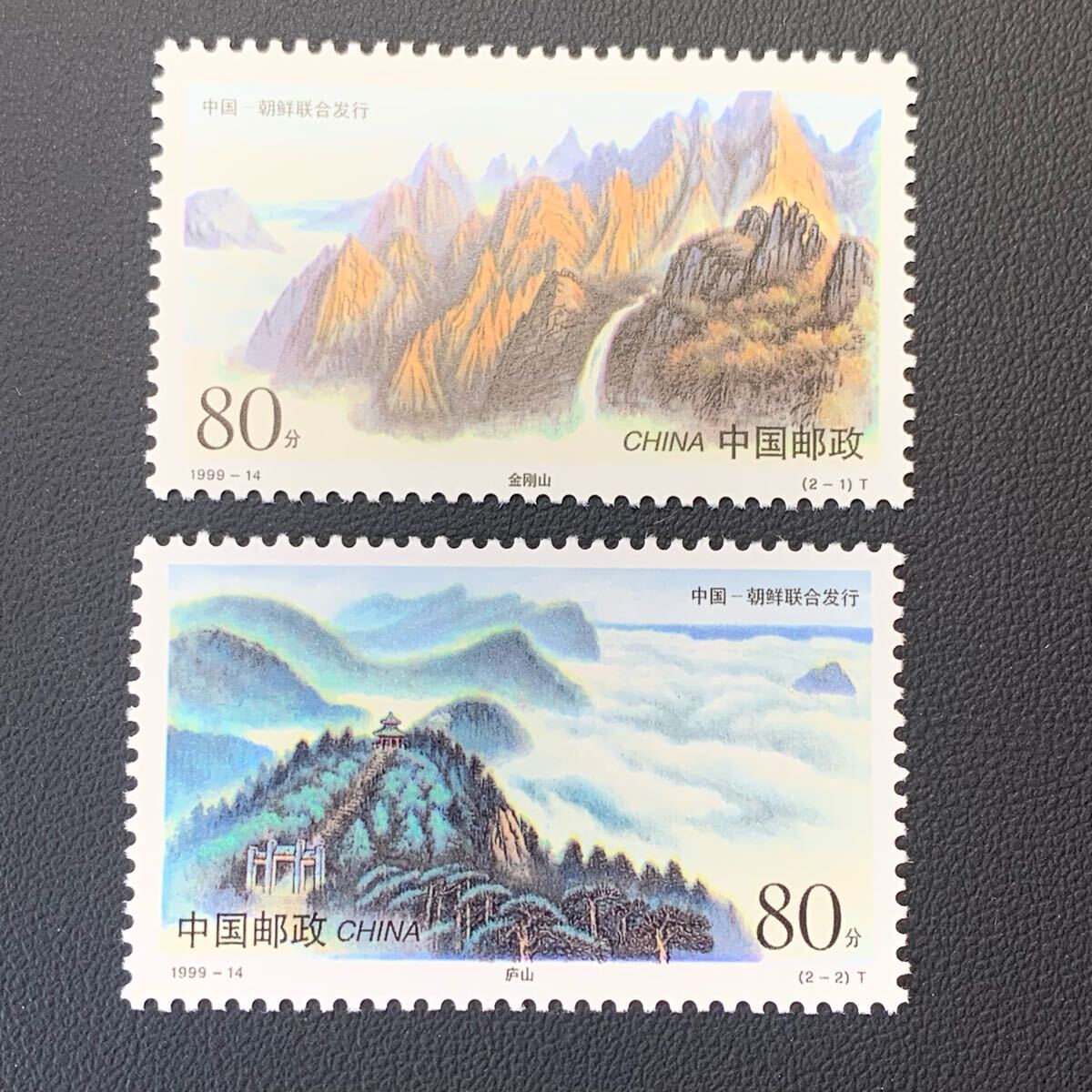 中国切手  未使用  1999年  1999ー14/盧山と金鋼山/2種完/NH/北朝鮮とのジョイント発行