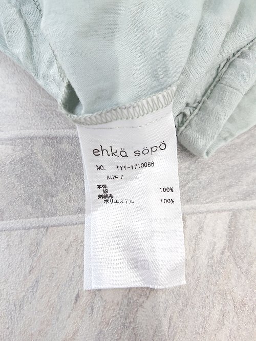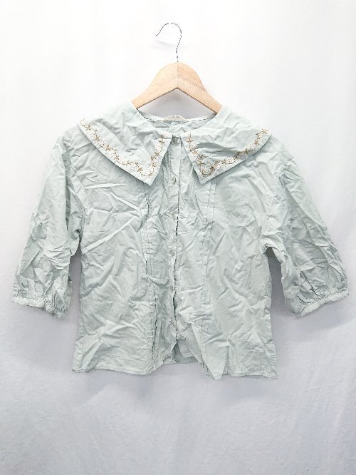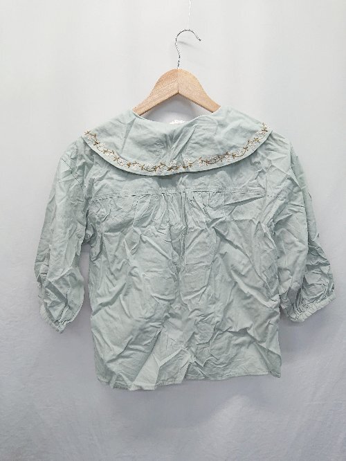 ◇ ⊂ ehka sopo エヘカソポ 刺繍 くすみカラー 七分袖 シャツ ブラウス サイズF グリーン系 レディース E