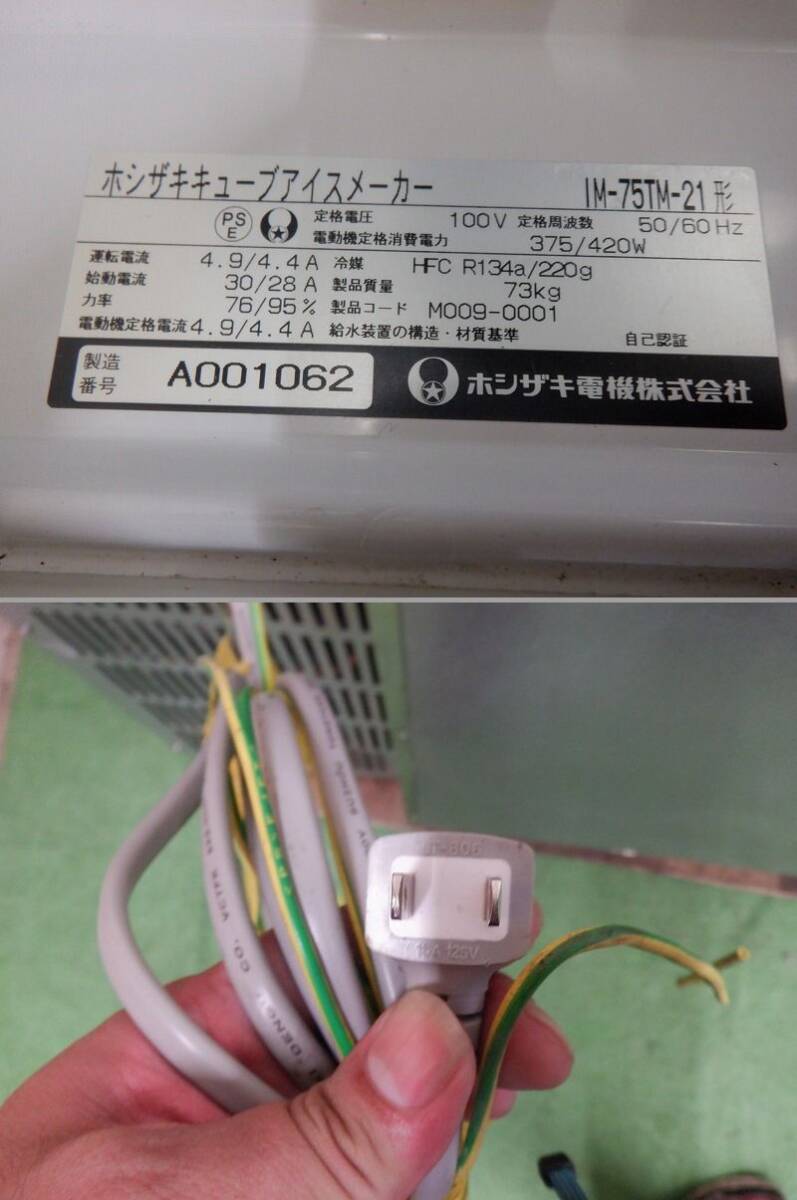 TKR7H-29/ホシザキ/キューブアイスメーカー/製氷機/IM-75TM-21/100V/アンダーカウンター/店舗/厨房/業務用