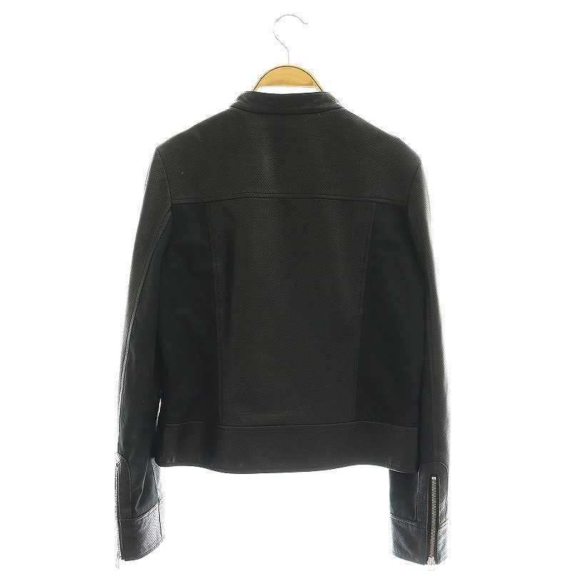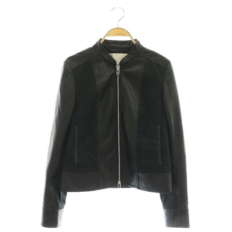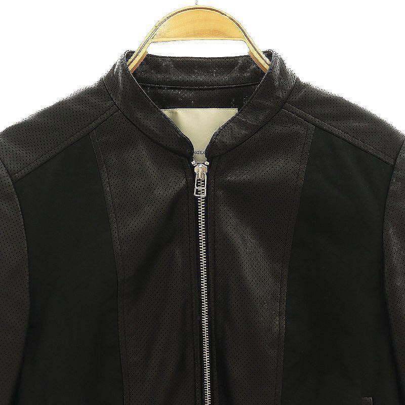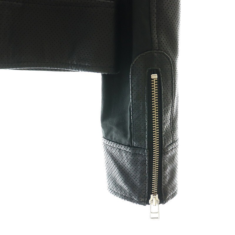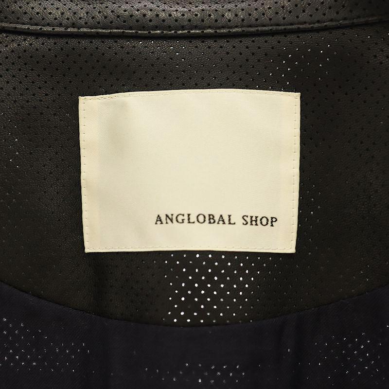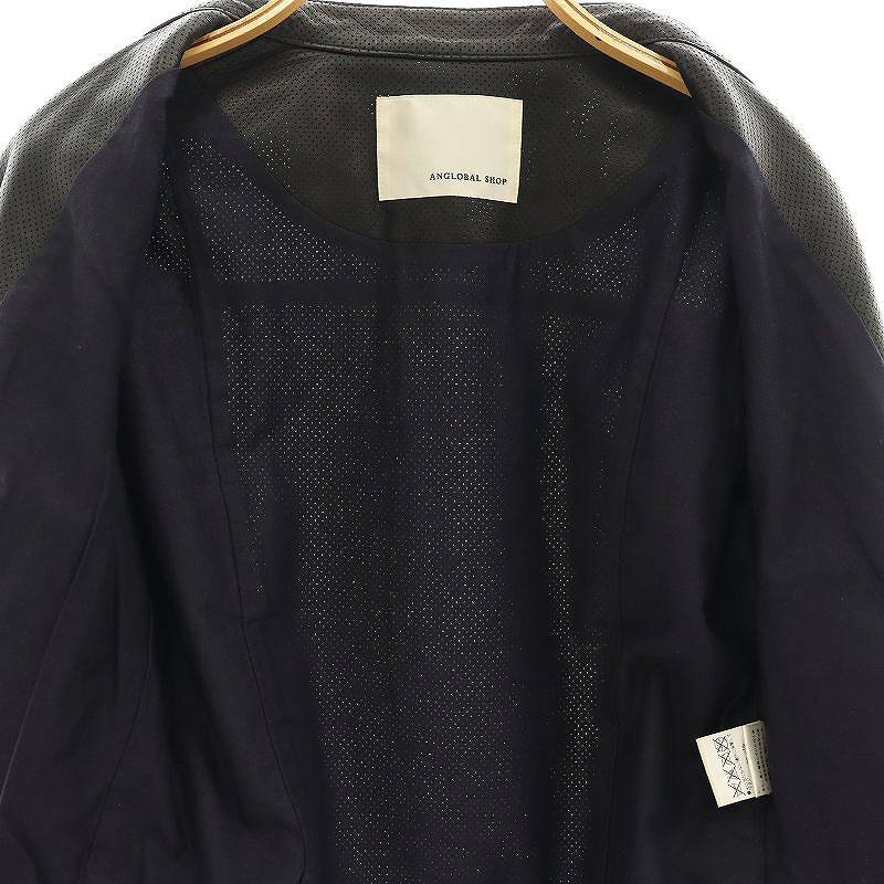 アングローバルショップ ANGLOBAL SHOP ラムレザーパンチングノーカラージャケット ジップアップ 38 黒 /CX ■OS レディース