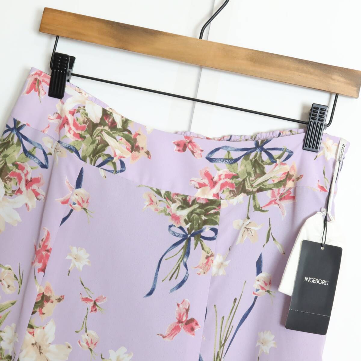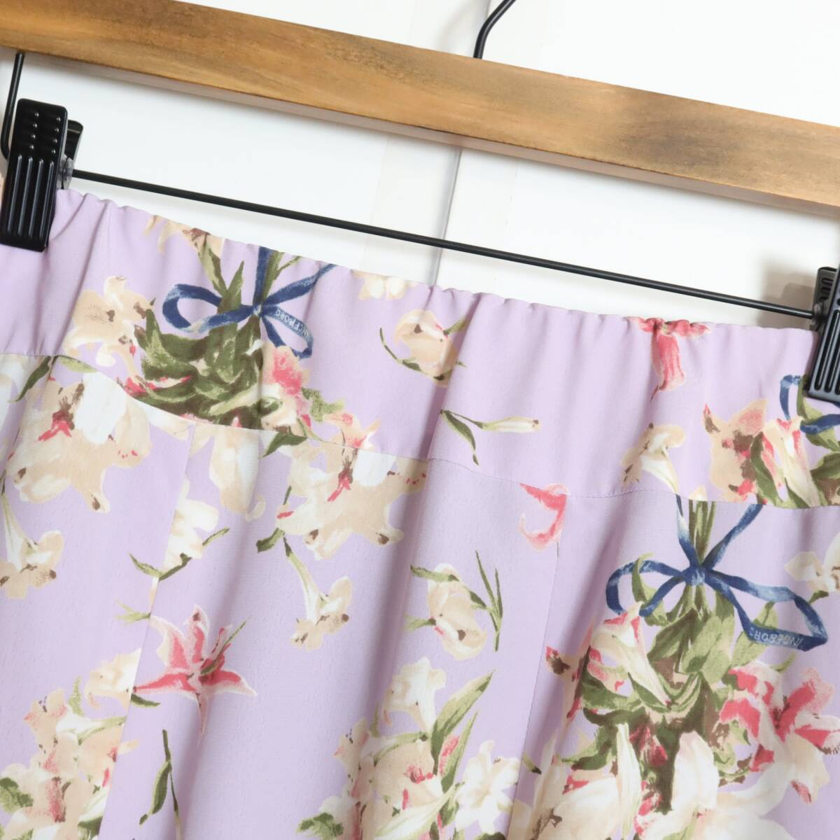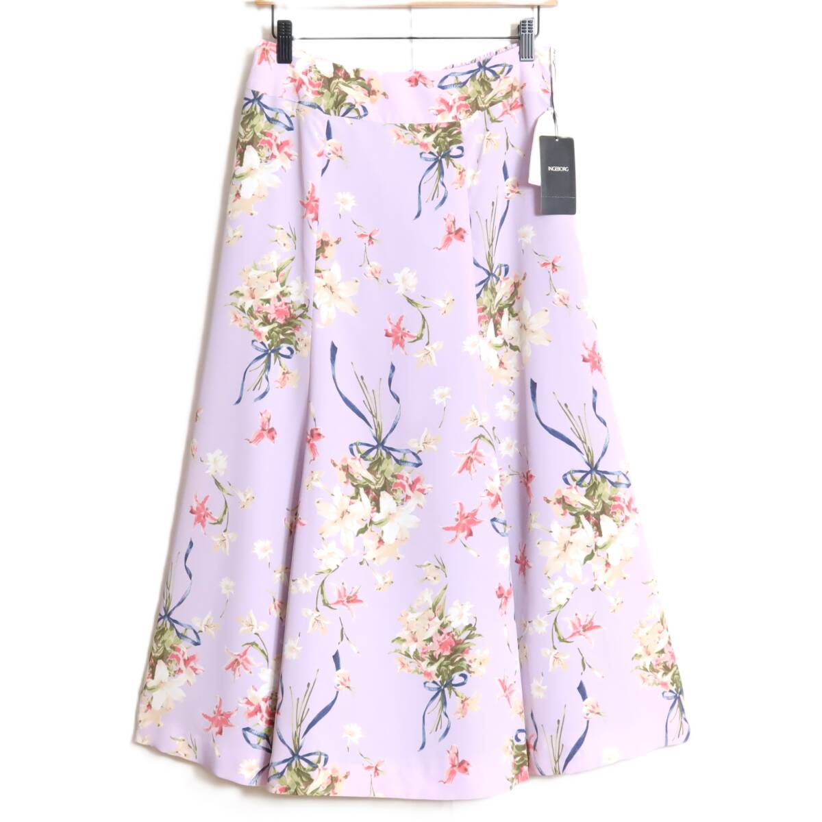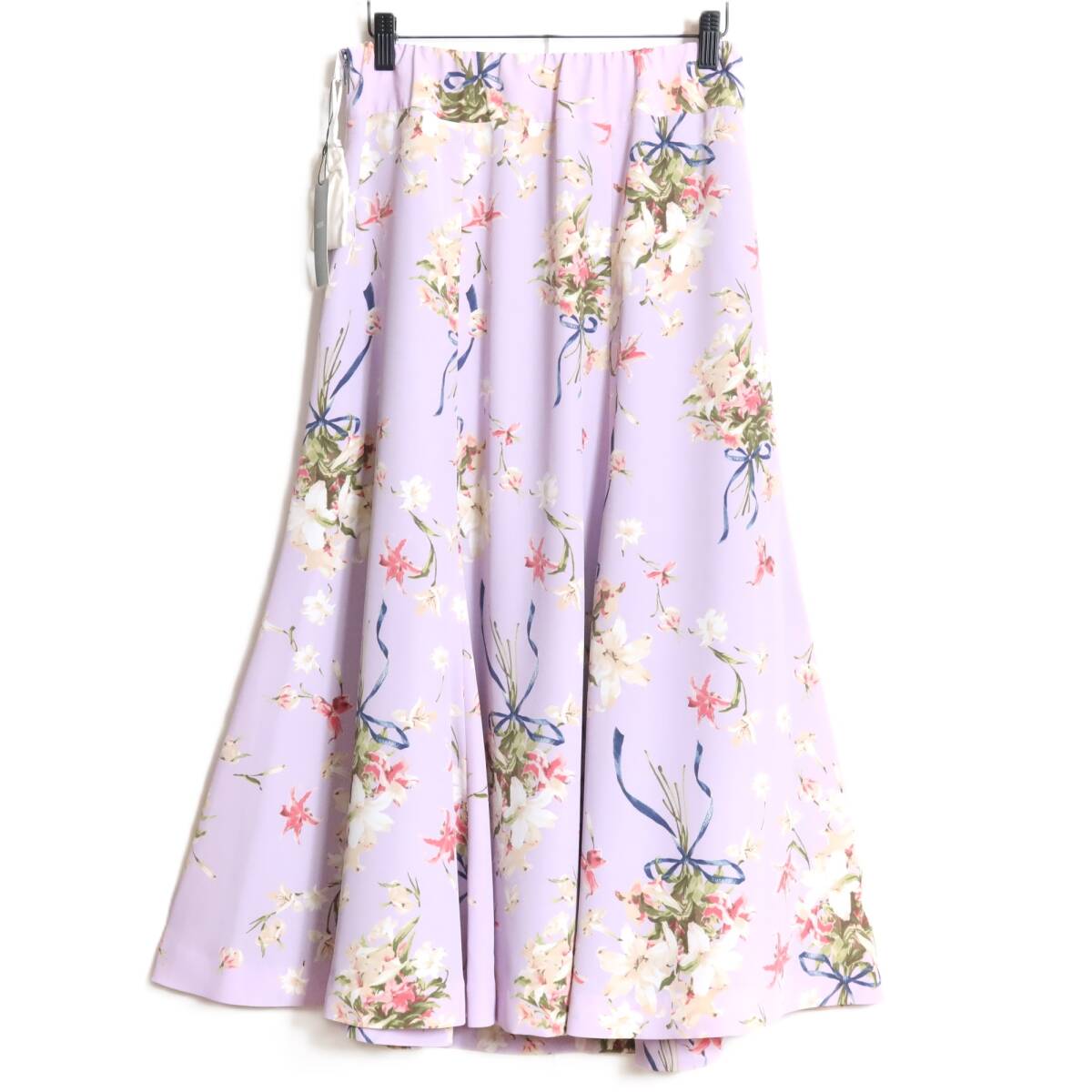 商品説明 | 【実寸約】ウエスト73~丈83(cm) 【サイズ表記】 4(サイズ11号) 【素材】 ポリエステル100% 【状態】新品タグ付きのお品物 【定価】46,200円 【デザイン】薄紫系b フェミニンなフレアスカートです。 ユリのプリントがエレガント♪ ウエストは後ろゴム入りで着心地もバツグン♪ ロマンティックコーデに大活躍するアイテムです。 薄手/裏地あり |