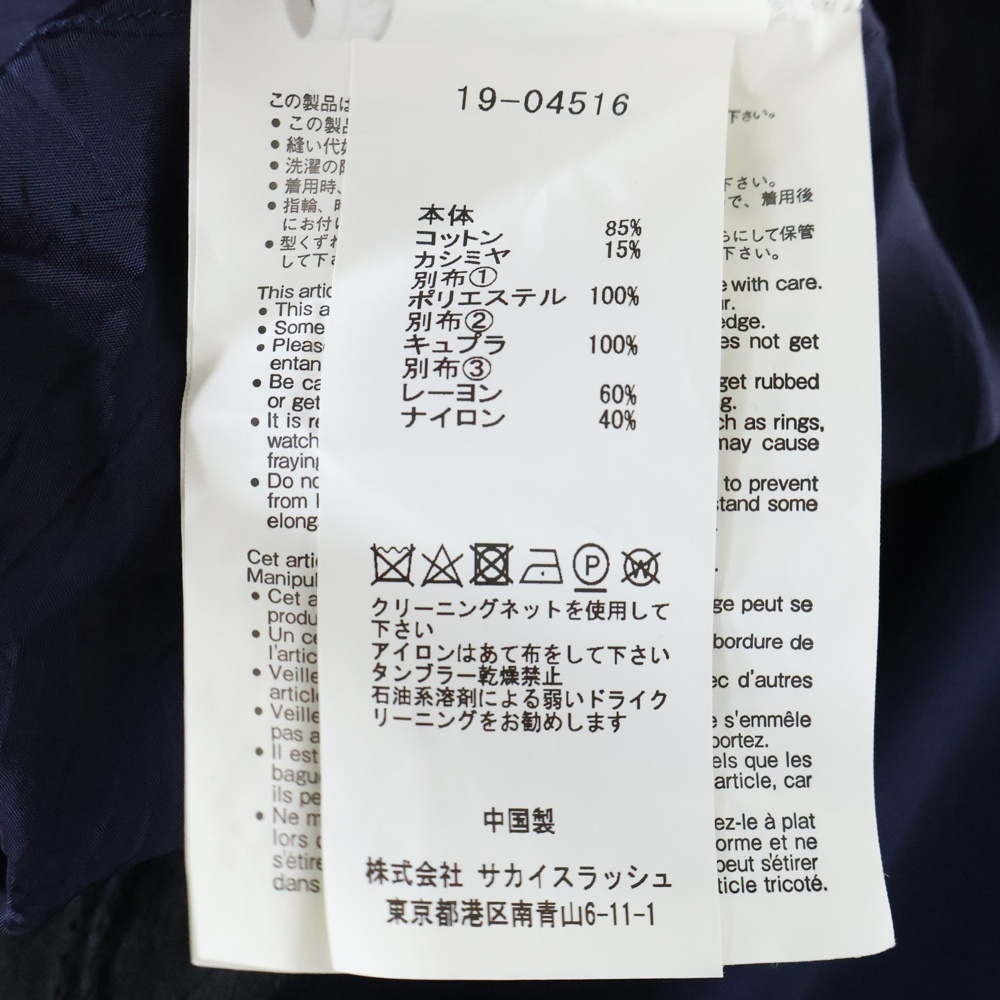 Sacai サカイ コットン カシミア ギャザー キャミソール ブラウス レディース ネイビー 19-04516