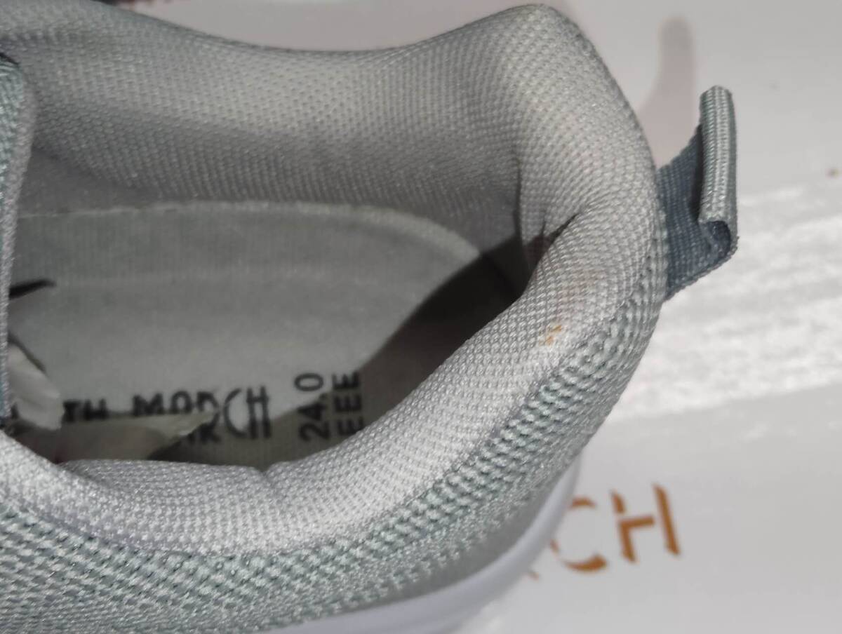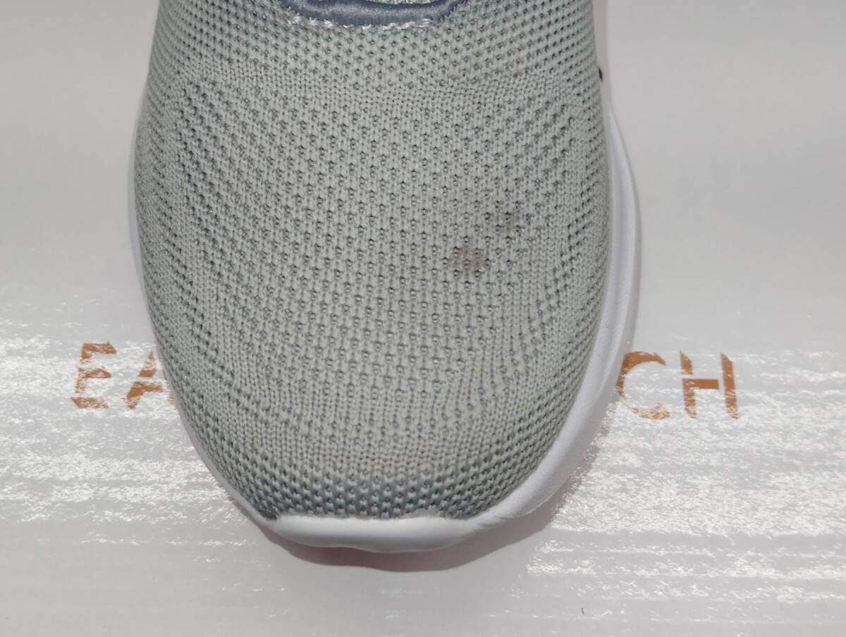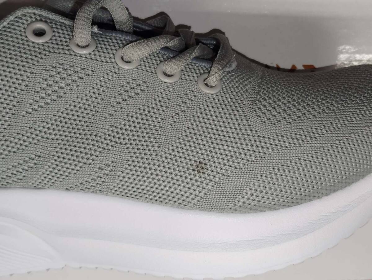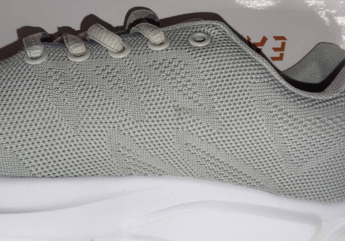 ※右の外側側面と踵、左の内側側面と爪先に汚れがあるため、アウトレット表記とさせていただいております(写真5・6・7・8枚目)