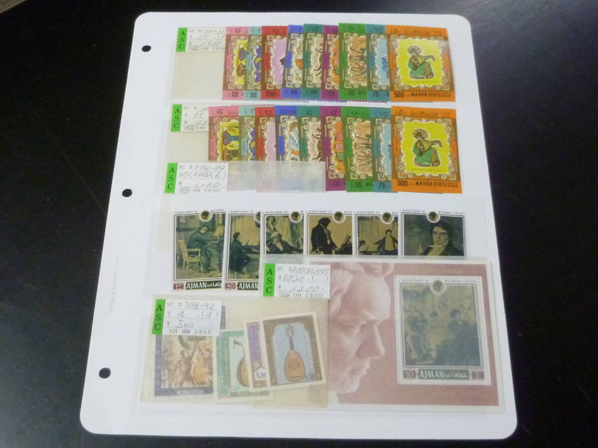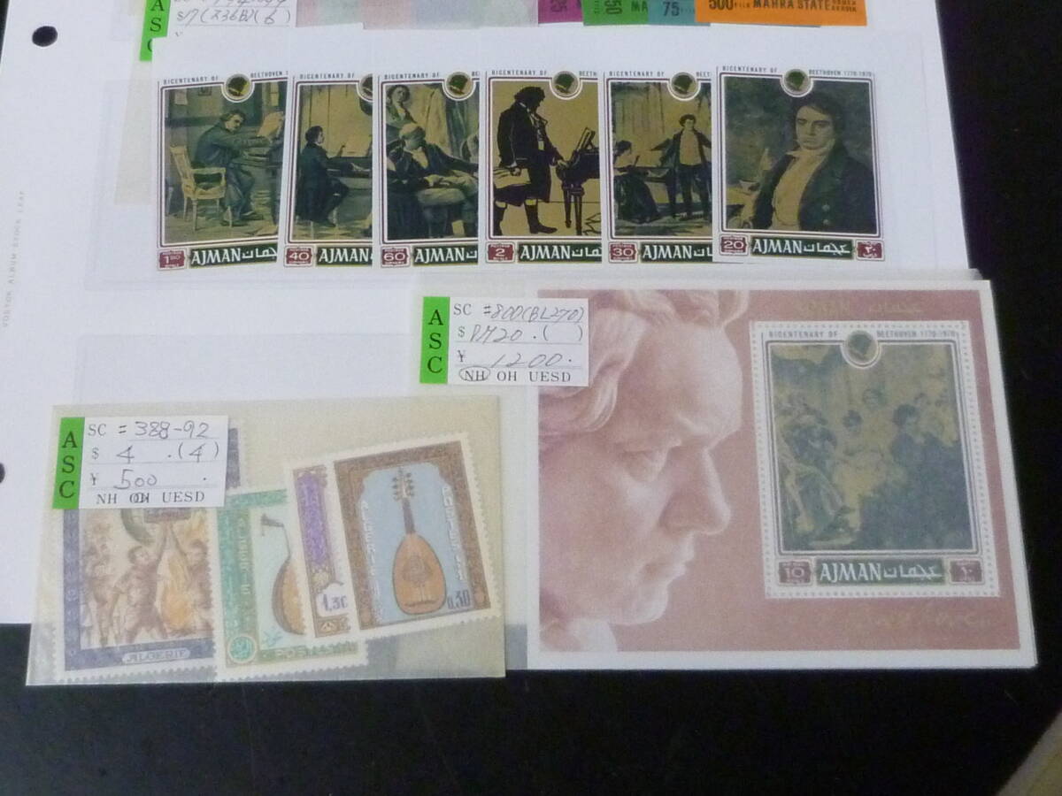 【8.22】 №1 音楽関連切手 3ヵ国 マフラ(有目打・無目打)・アジュマーン・他 計28種+小型シート 未使用NH主体・VF