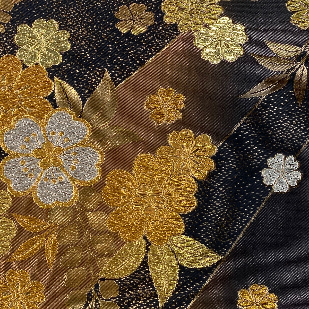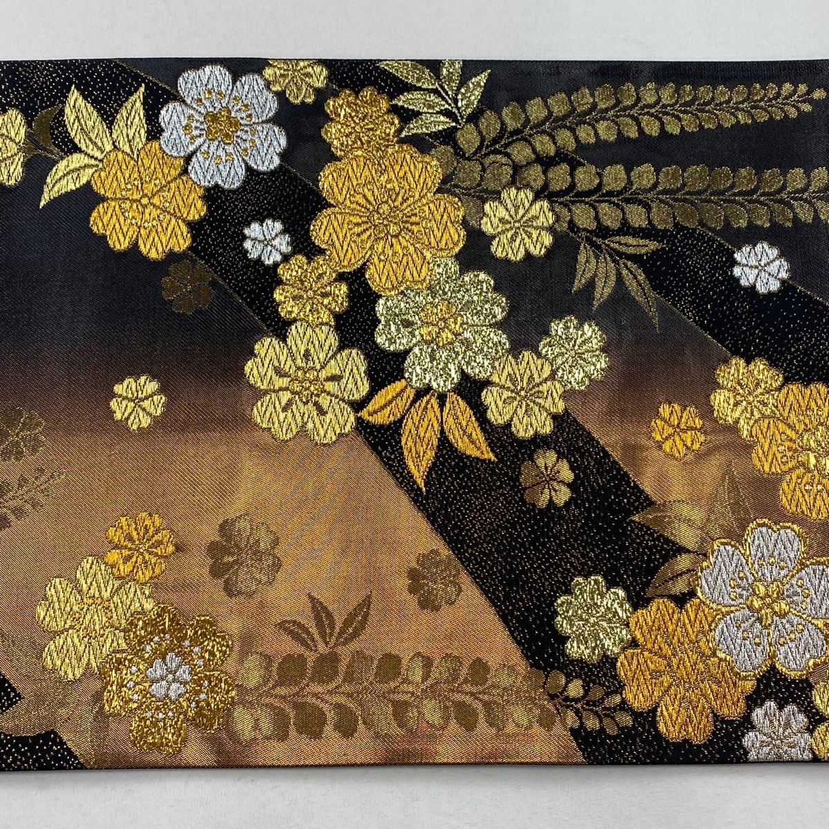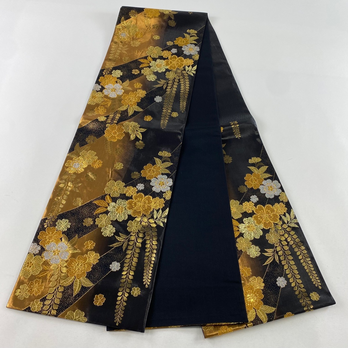 | 袋帯 秀品 桜 藤 金銀糸 唐織 黒 六通 正絹 【中古】 |