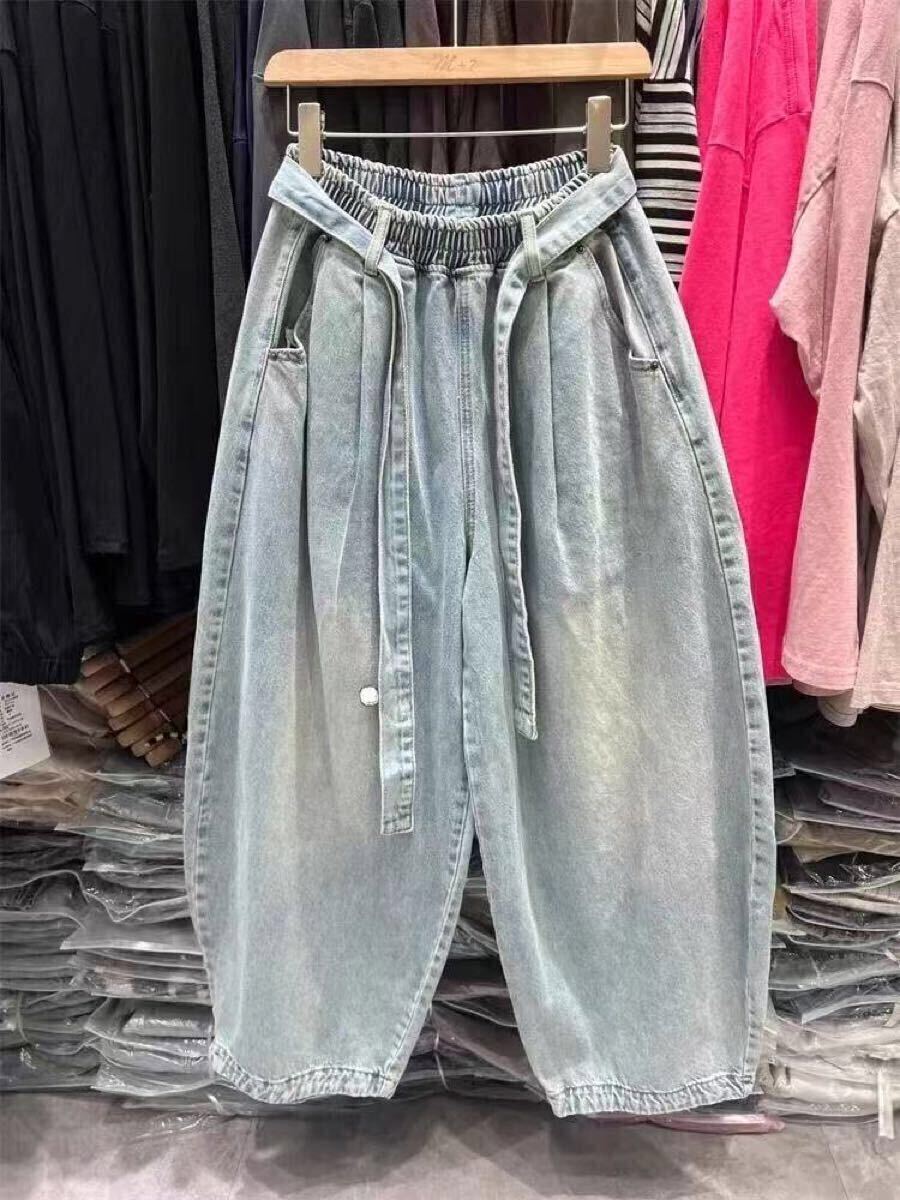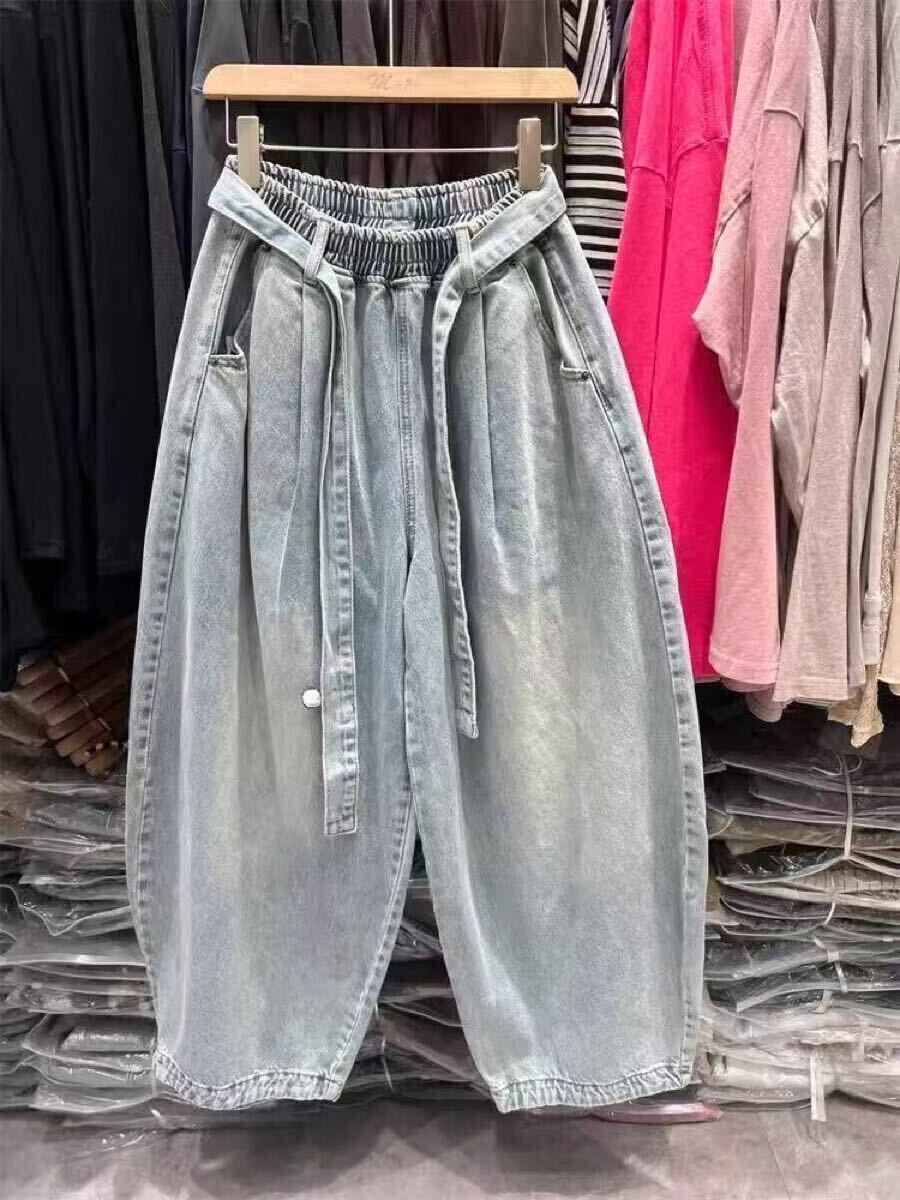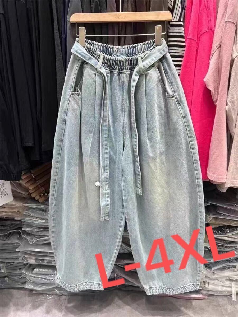 ジーンズ デニムパンツ レディース ウエストゴム 薄手 ロングパンツ ボトムス 九分丈 ハイウエスト 大きいサイズ ゆったり 体型カバー 春 夏 秋 着痩せ 美脚 楽チン カジュアル お出かけ LPGA044(L-4XL)