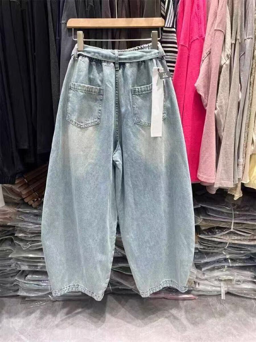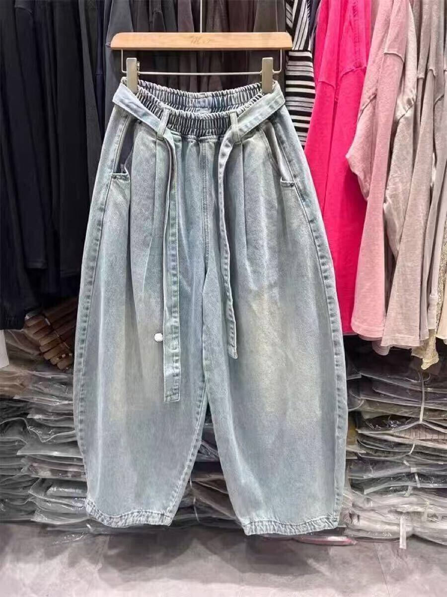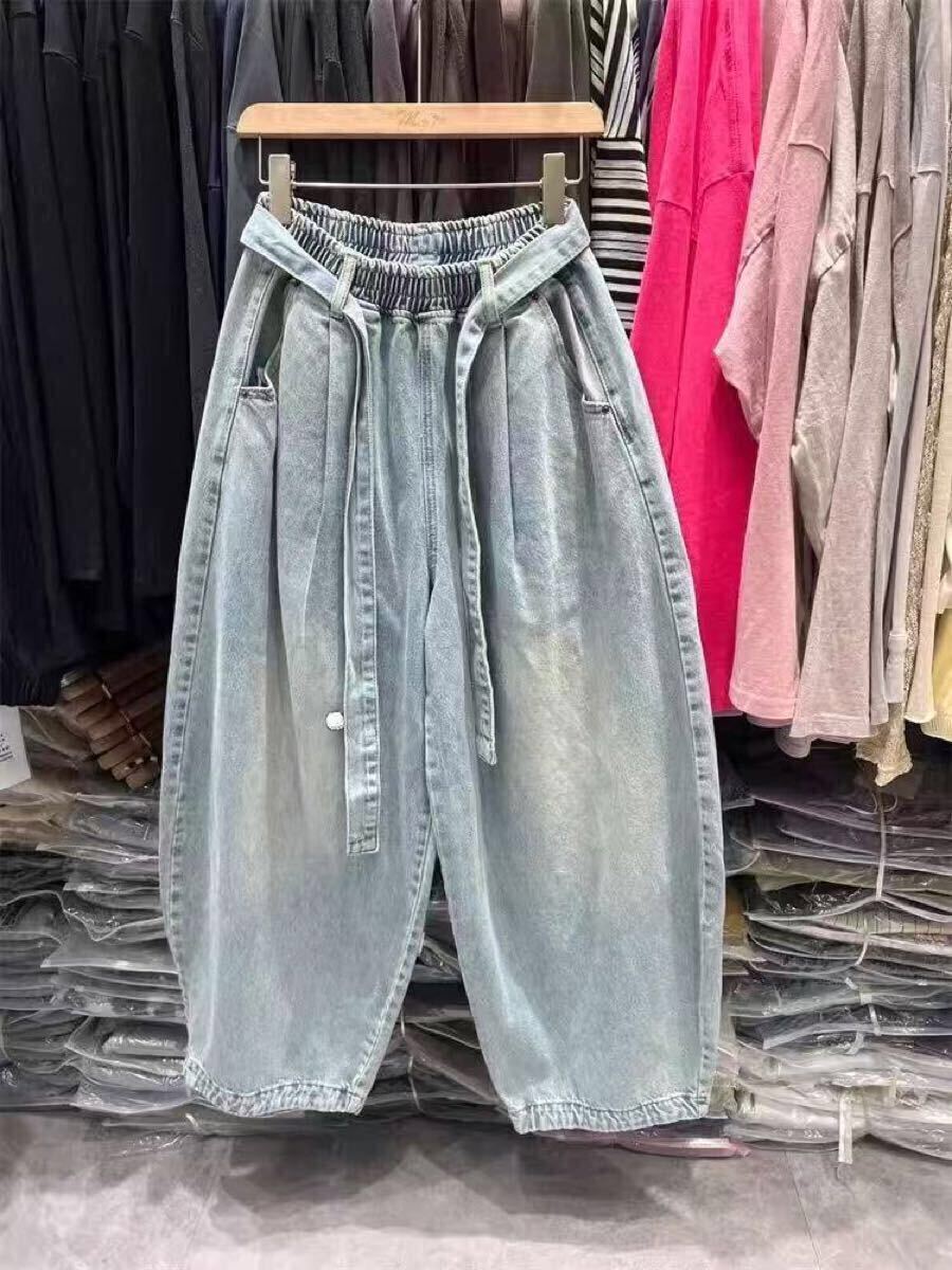 ジーンズ デニムパンツ レディース ウエストゴム 薄手 ロングパンツ ボトムス 九分丈 ハイウエスト 大きいサイズ ゆったり 体型カバー 春 夏 秋 着痩せ 美脚 楽チン カジュアル お出かけ LPGA044(L-4XL)