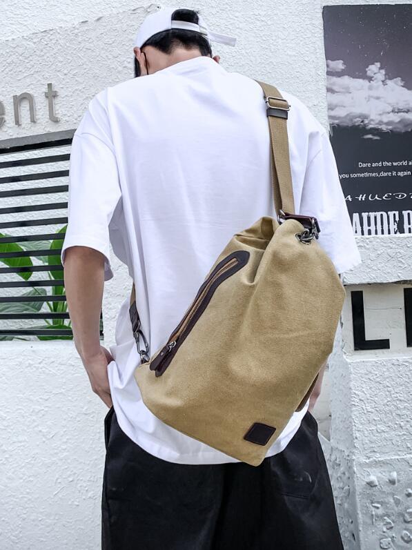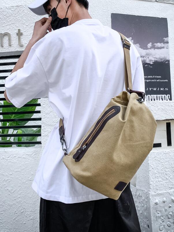 ボディーバッグ 大容量 キャンバス 多機能 ワンショルダーバッグ 斜めがけ 帆布 カジュアル 旅行 アウトドア 茶色