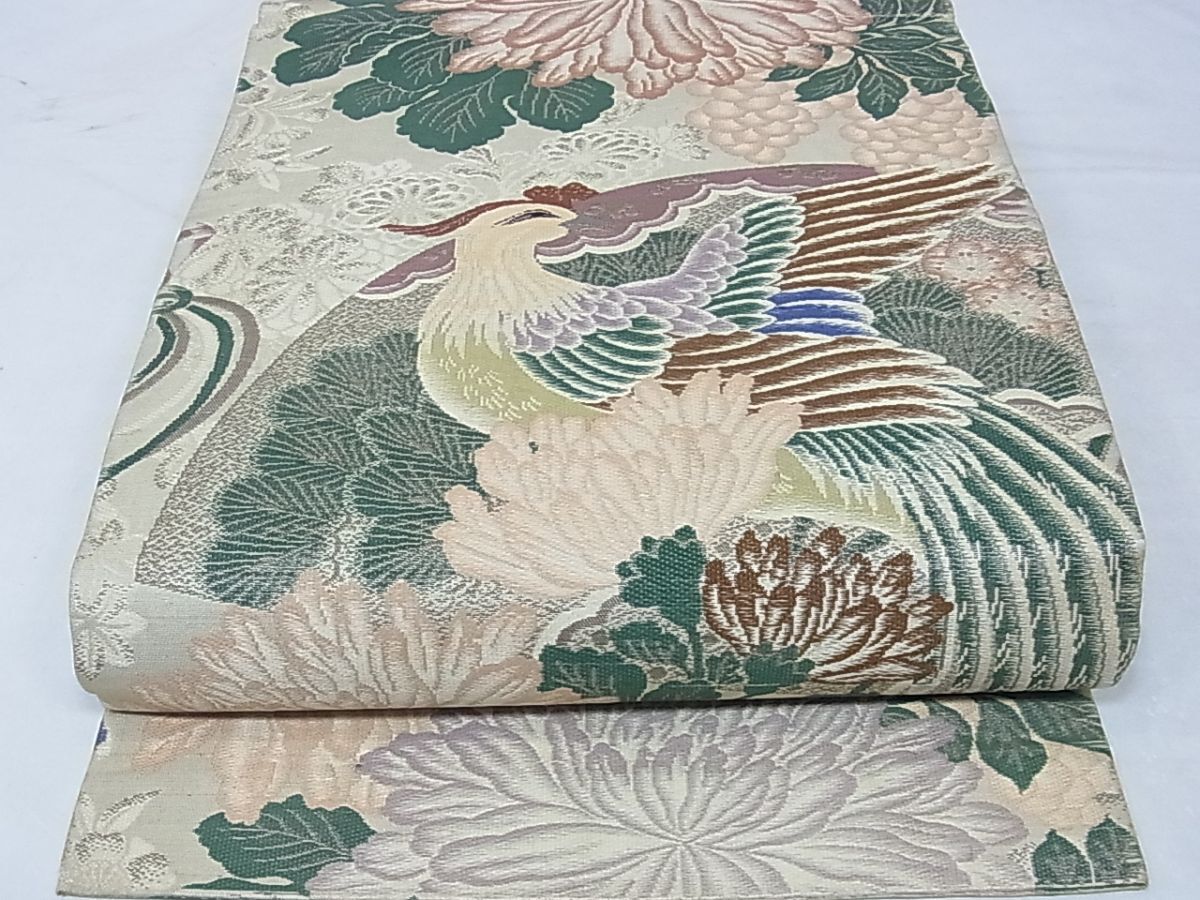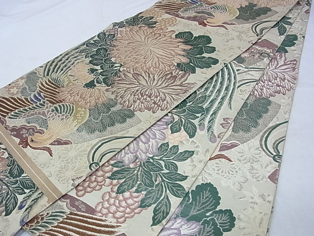 eふれんず◆アンティーク 大正ロマン 昭和レトロ 丸帯 引き抜き帯 鳳凰花文 正絹◆bm1478
