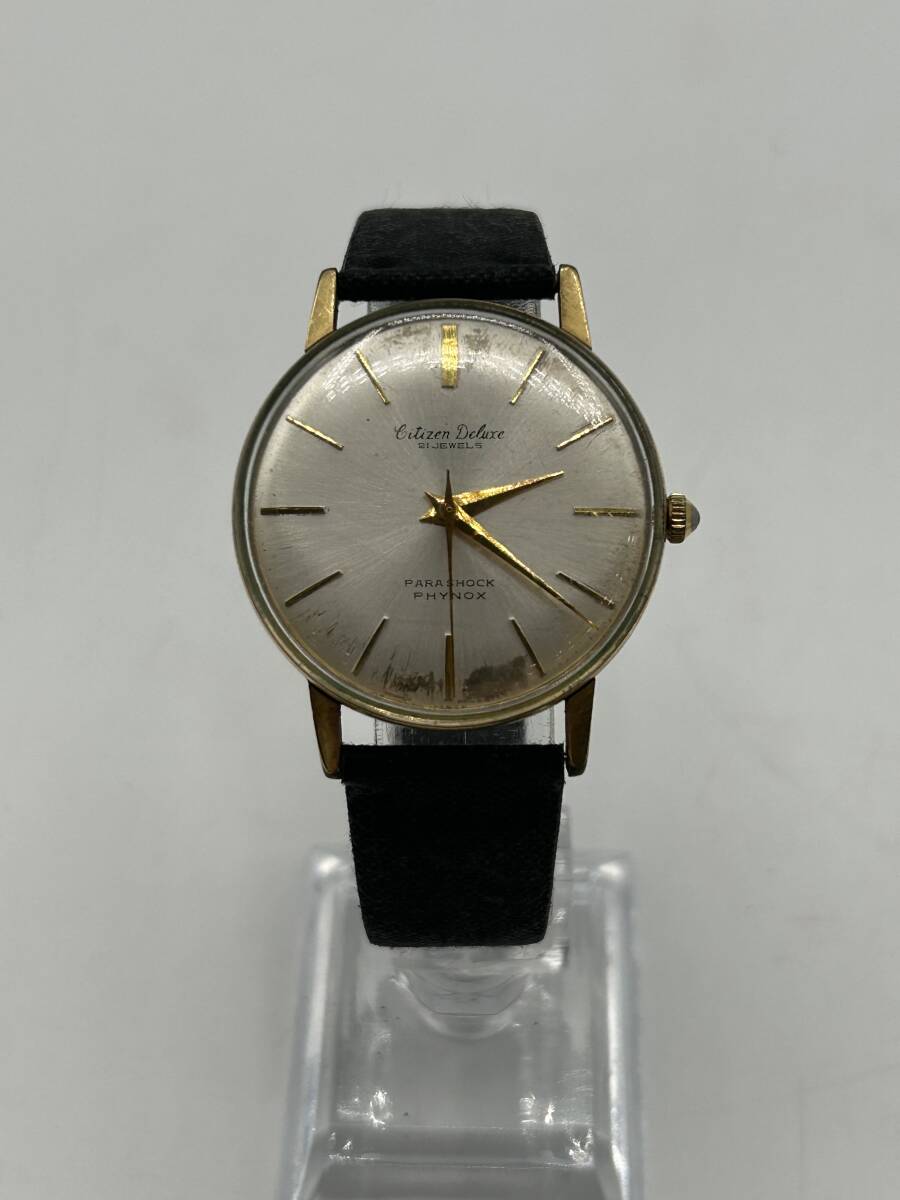 N42753☆ Citizen Deluxe シチズン デラックス PARA SHOCK PHYNOX パラショック 腕時計 手巻き メンズ 3針 プラ風防 ゴールド