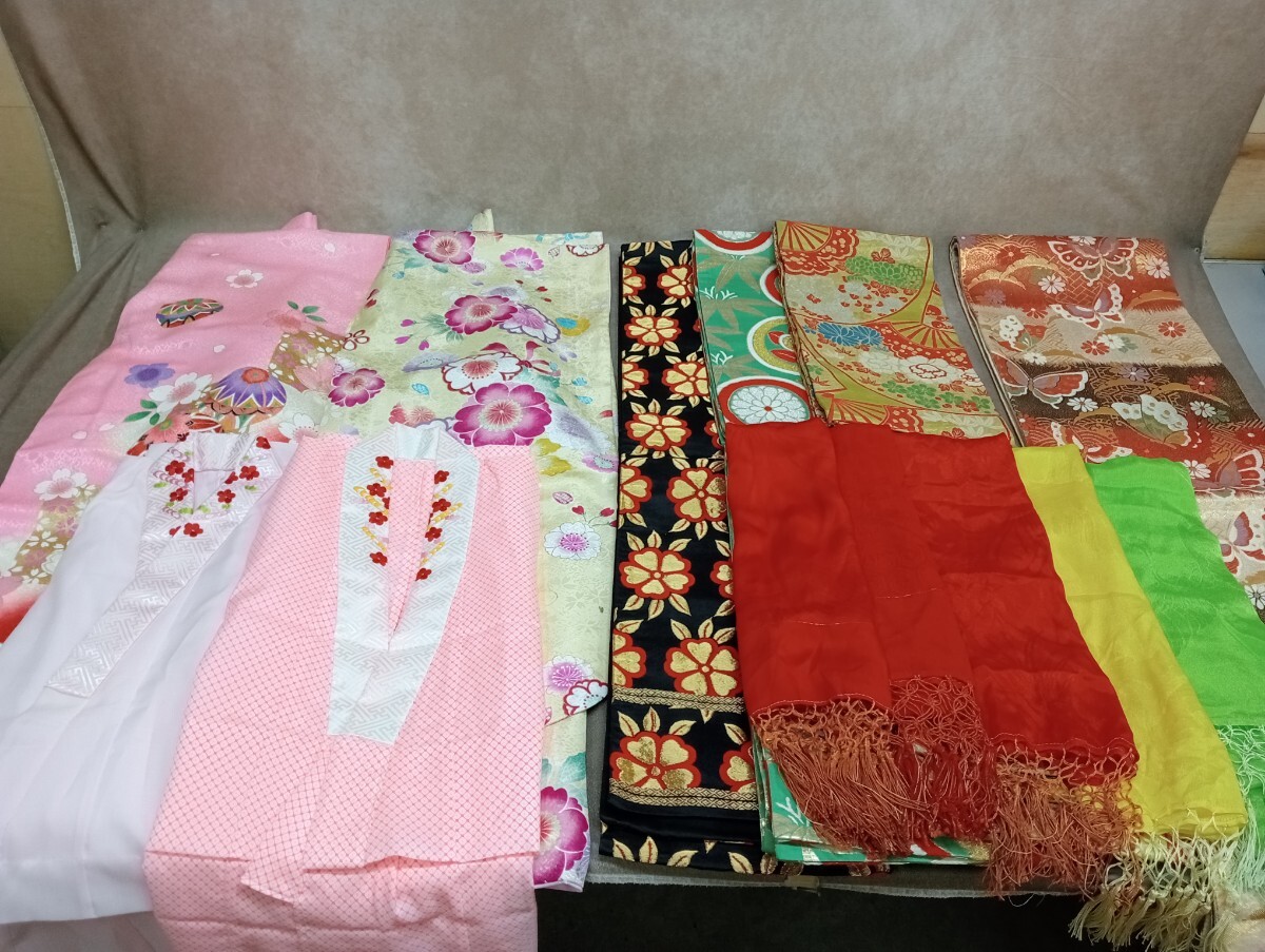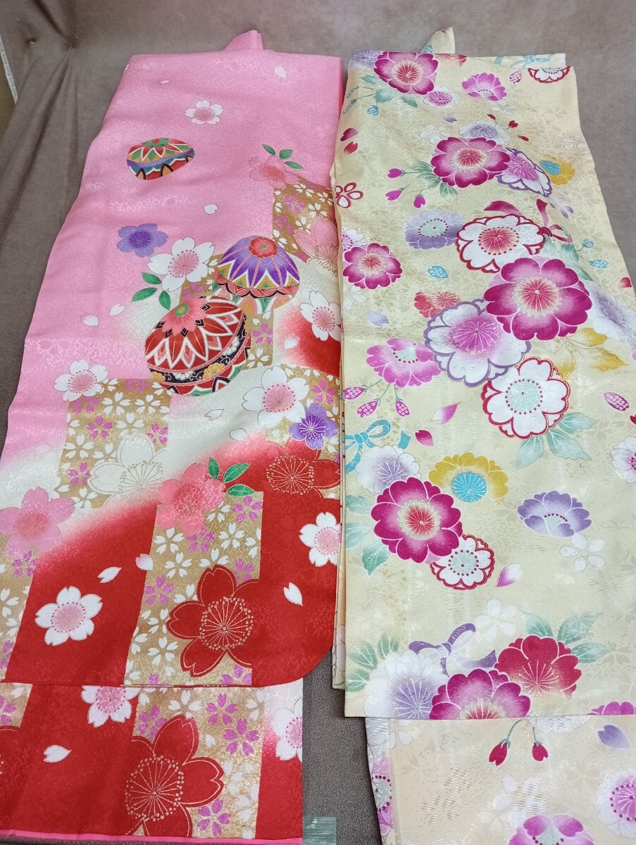 振袖2枚、長襦袢2枚、志古貴5本、帯4本
