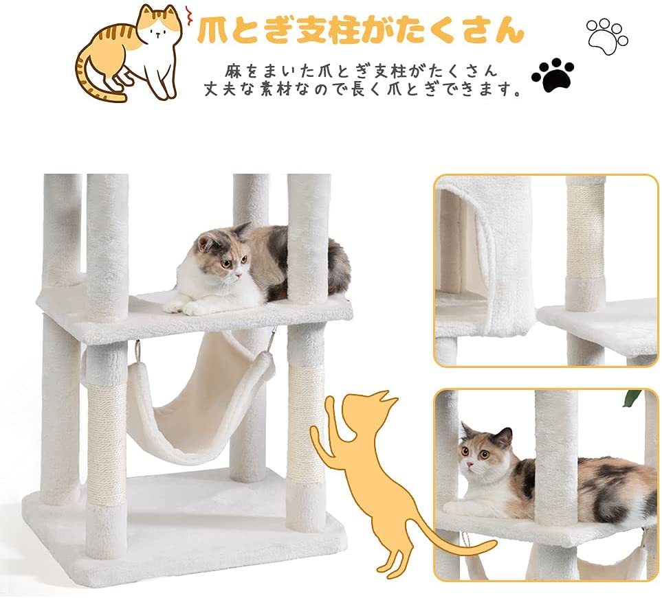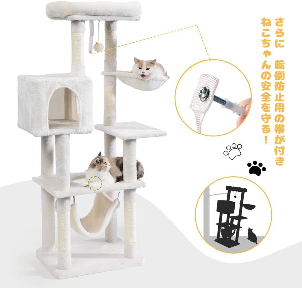 • 【高品質・高耐久性】力学的原理に基づいた安定なデザインは、大きな猫ちゃんが遊んでも揺れにくいです。転倒防止用の帯が付き、ネジで壁に固定することができます。表面全体は柔らかい手触りで小さい子猫も安心に寝れます。