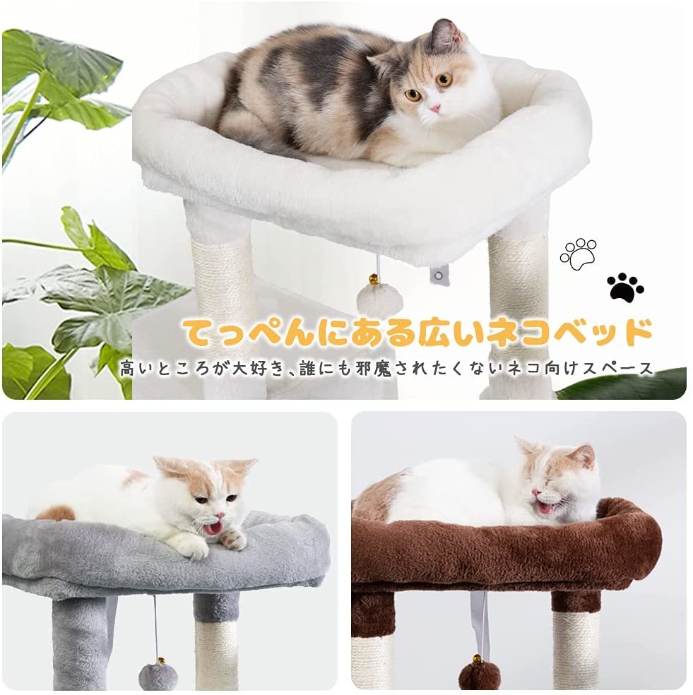 • 【頑丈で安定したデザイン】バランスがよく、倒れる心配はありません!大きな猫ちゃんが遊んでも揺れにくく安定性抜群です。下の台座はしっかりと上部の重さと猫ちゃんの重さを支え、猫ちゃんが上り降りでも揺れない、飼い主さんも猫ちゃんも安心で使用いただけます。