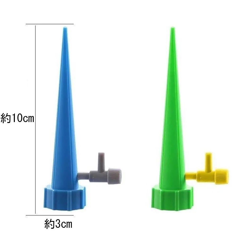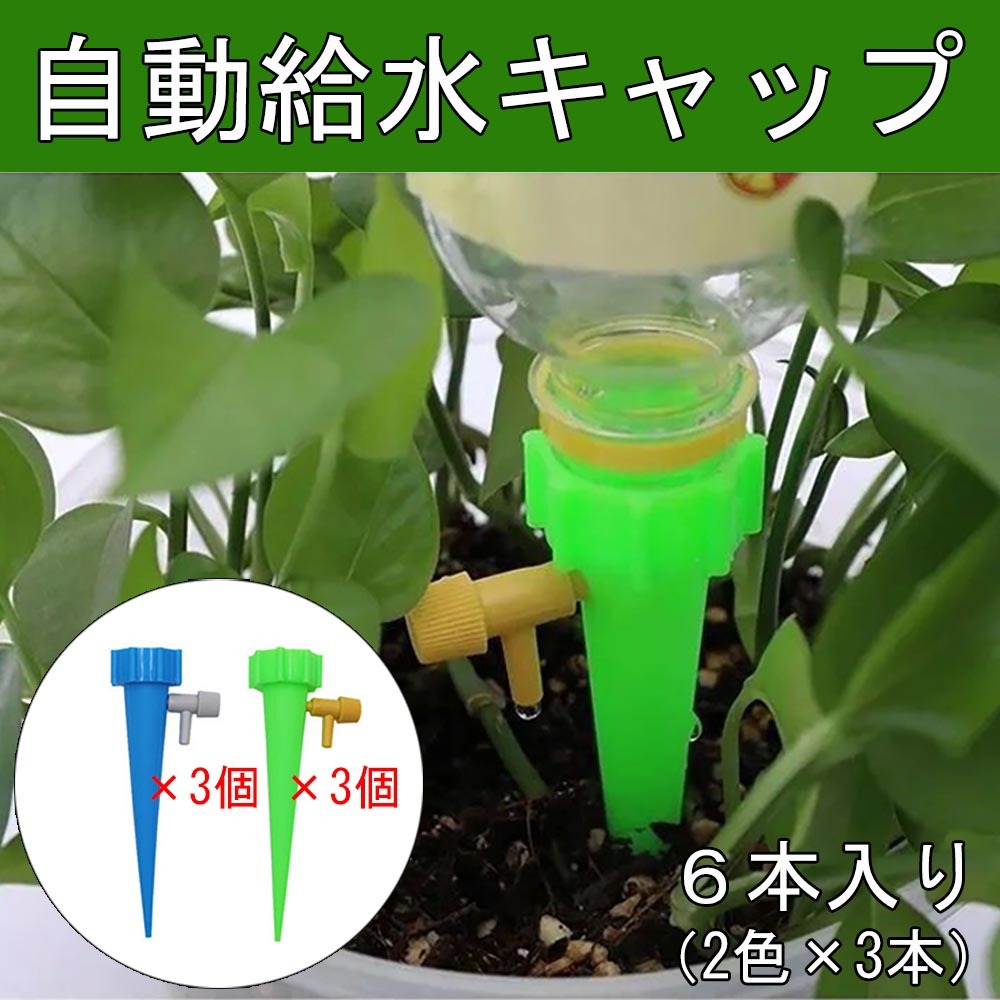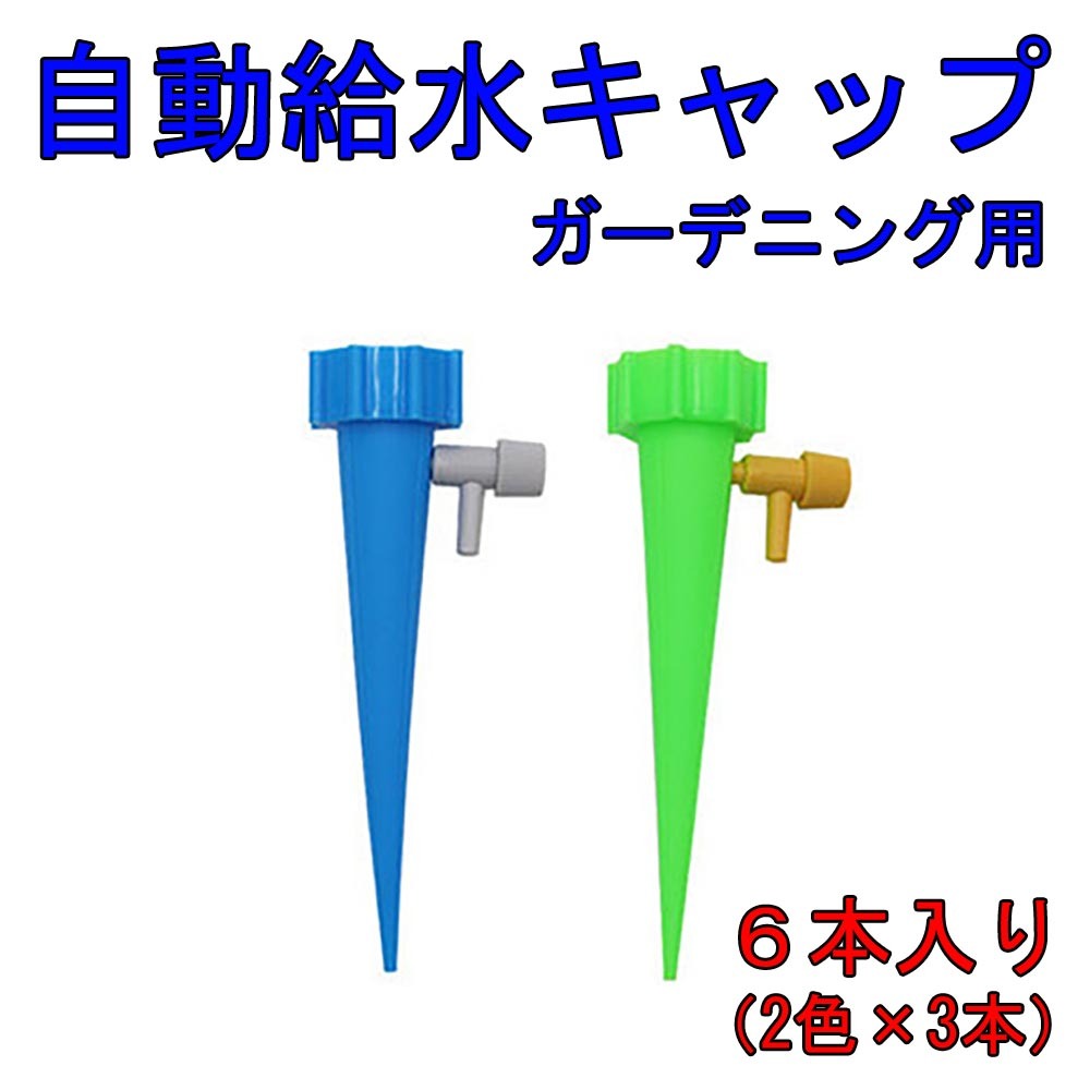 『自動給水キャップ ガーデニング 水量調整 植物 盆栽 野菜 留守用 ペットボトル 自動給水器 自動散水システム 水遣り器 水量調整 園芸用品 散水用品 灌漑 水やり 緑 青 2色 6本セット』です。