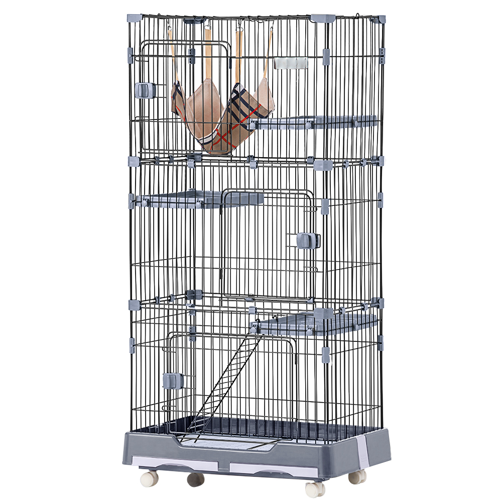 猫 ケージ キャットケージ ペットケージ キャスター付 猫ゲージ 大型 多頭飼い ネコドア キャットハウス 1段2段3段可能 (3段,グレー)
