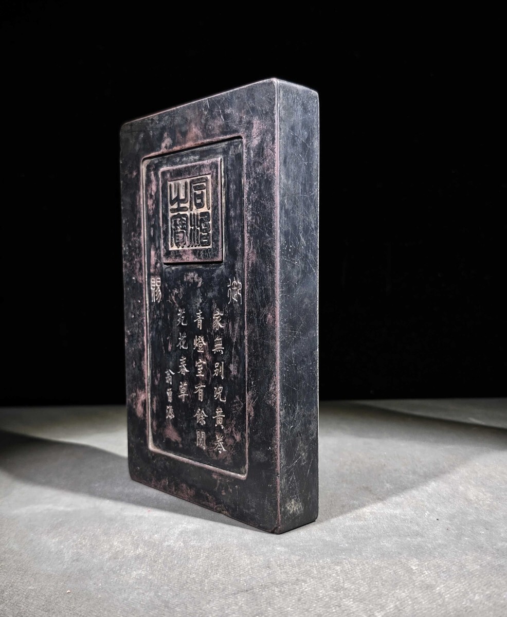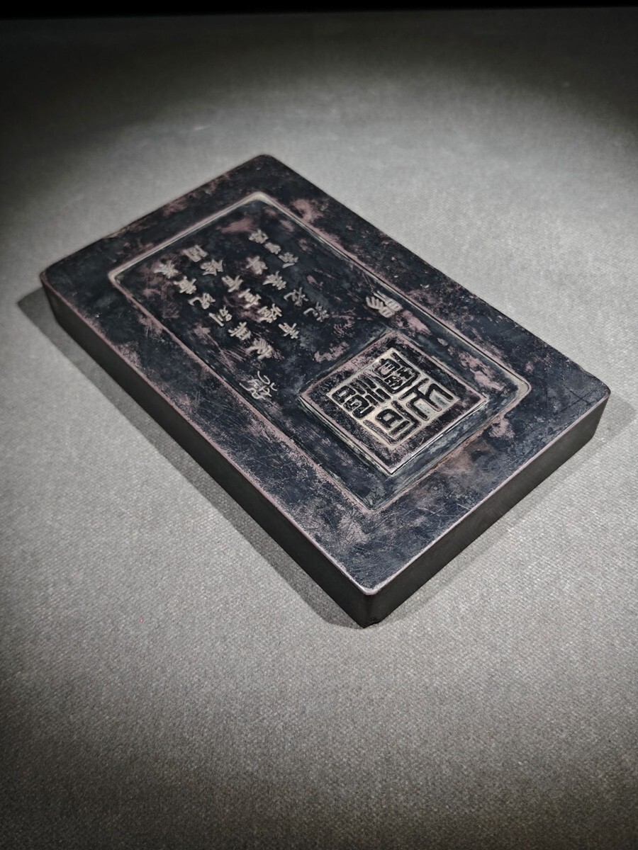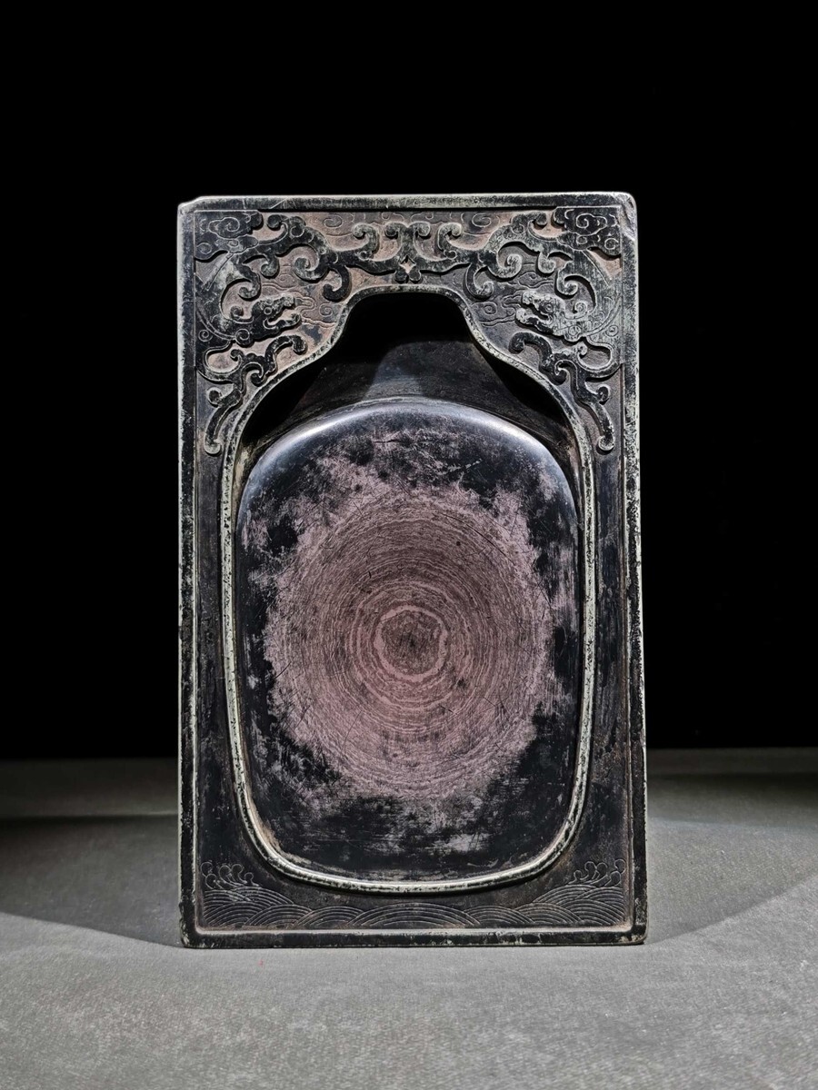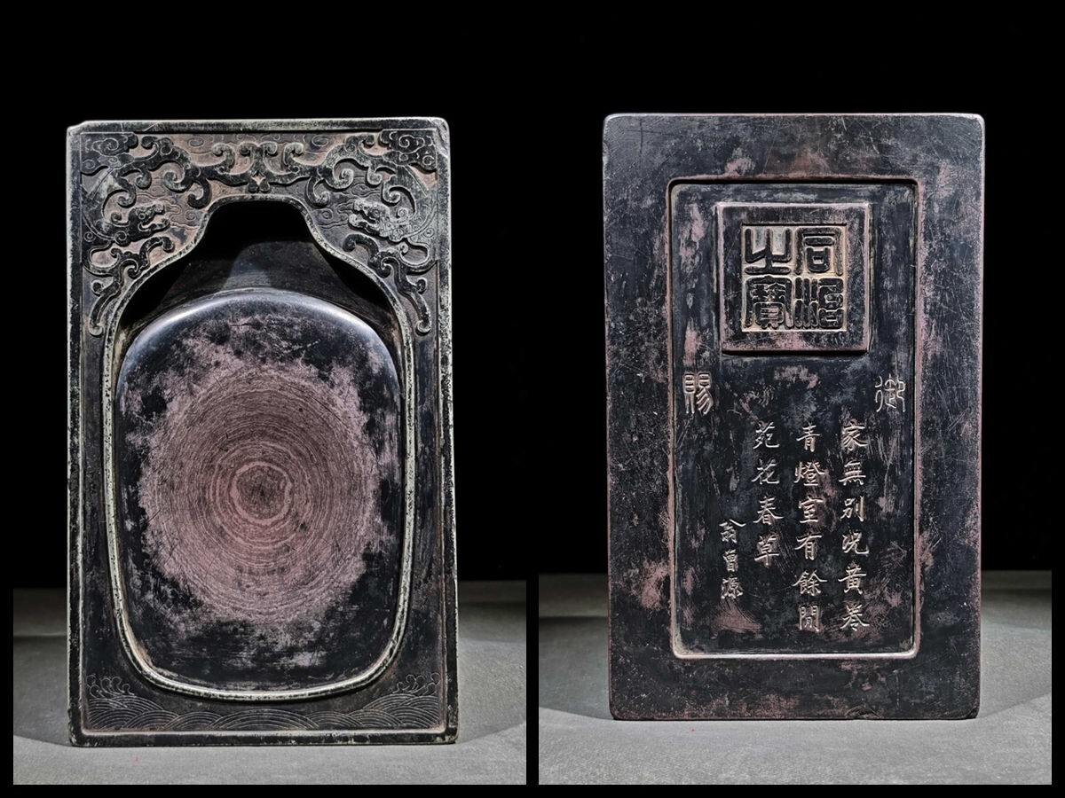 「紫色松花石硯 双菱龍文房硯 翁曾源銘 清時代」手彫り 文房四宝 書道具 中国古美術 旧蔵出