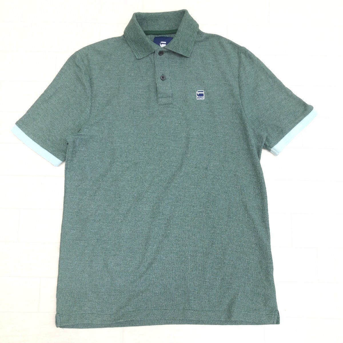 G-STAR RAW ジースター RC CORE POLO ロゴ刺繍 ショートスリーブ メランジ ポロシャツ XS 緑 グリーン 半袖 カットソー 国内正規品 メンズ