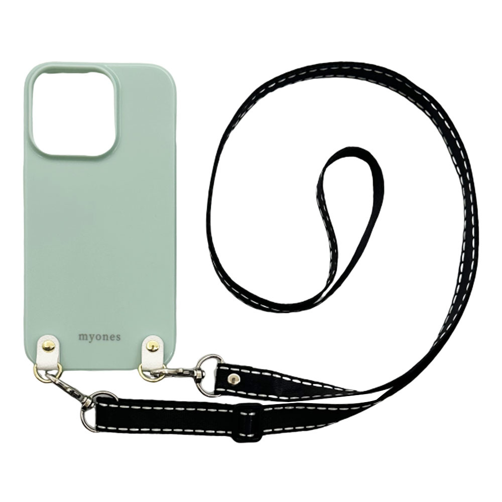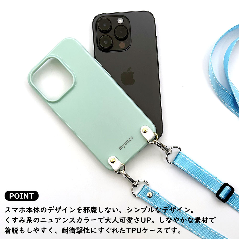 キッズケータイ KY-41C(くすみグリーン/ブラック)TPUケース ストラップ アクセサリー 肩掛け 斜めがけ かわいい