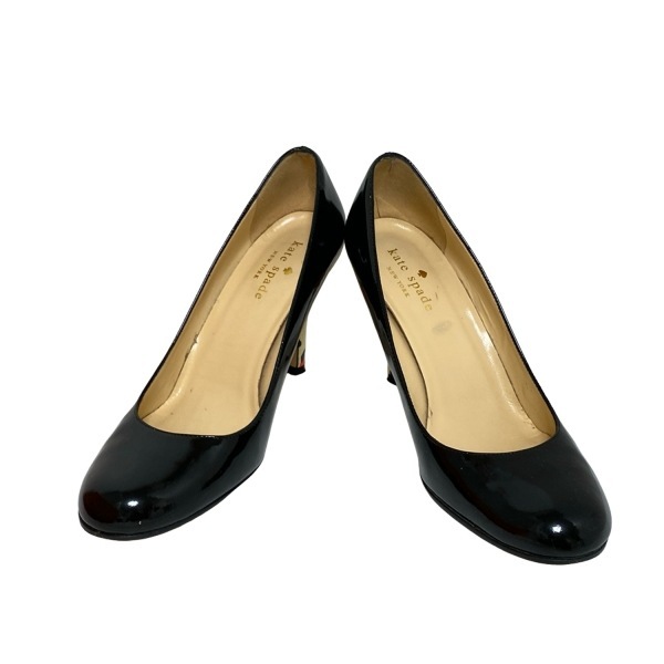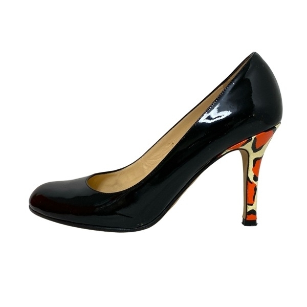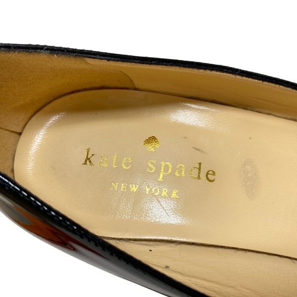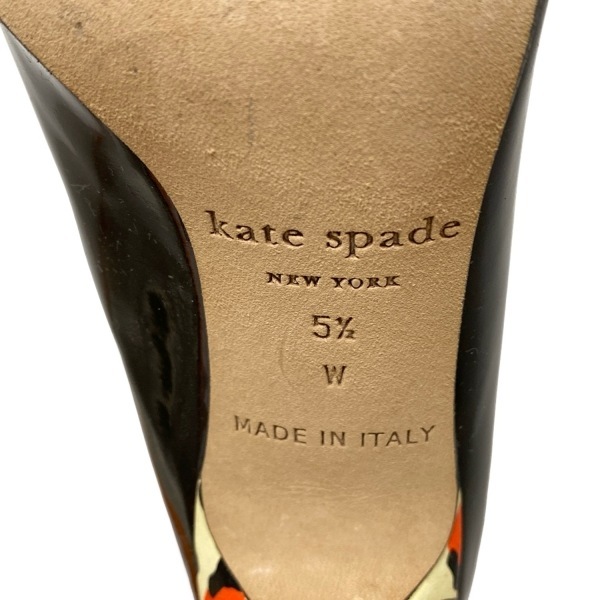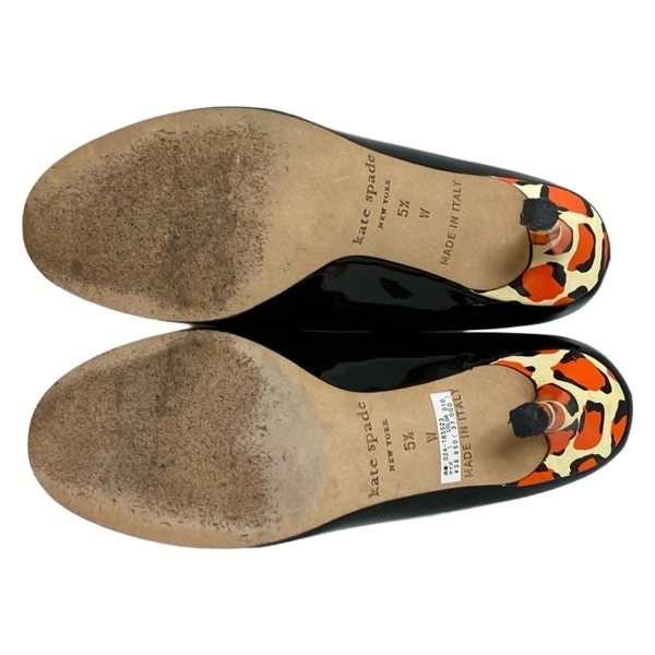 ケイトスペード Kate spade パンプス 5 1/2 - レザー 黒×オレンジ×アイボリー レディース 豹柄 靴