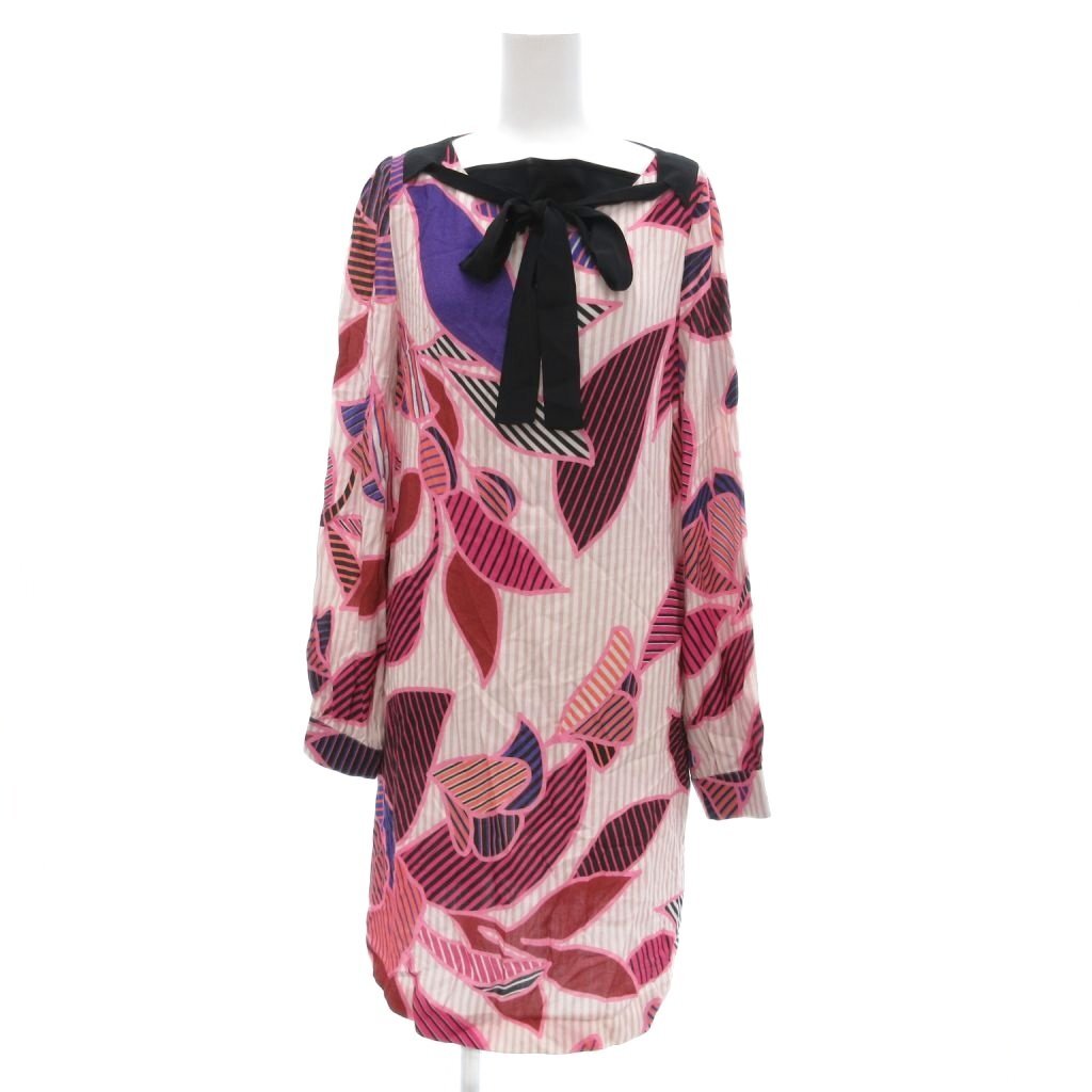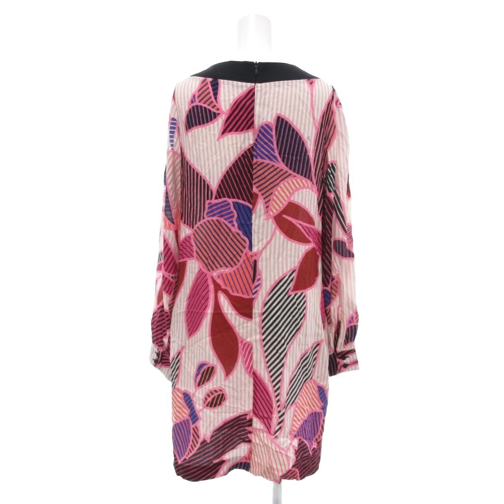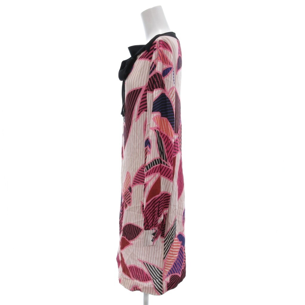 トラサルディ TRUSSARDI ワンピース 総柄 ストライプ リボン 長袖 40 ひざ丈 ピンク /JS ■GY19 レディース