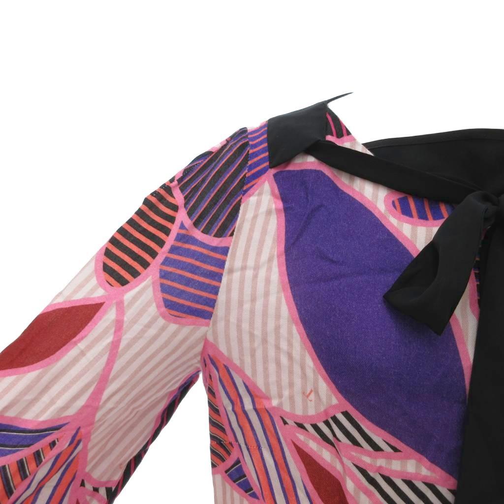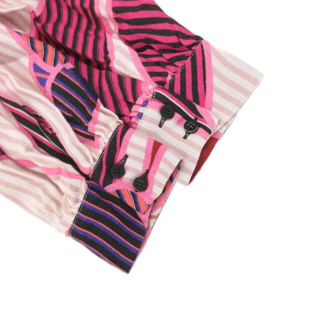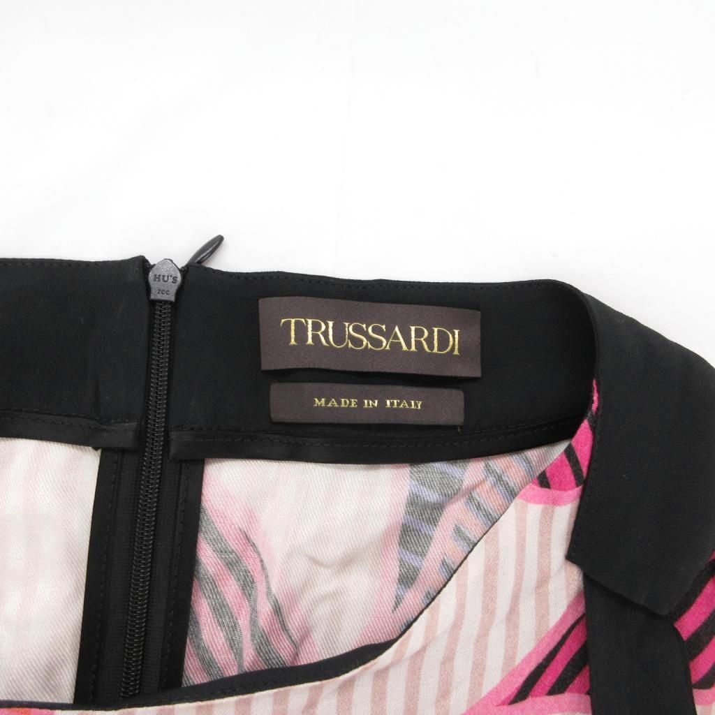 トラサルディ TRUSSARDI ワンピース 総柄 ストライプ リボン 長袖 40 ひざ丈 ピンク /JS ■GY19 レディース