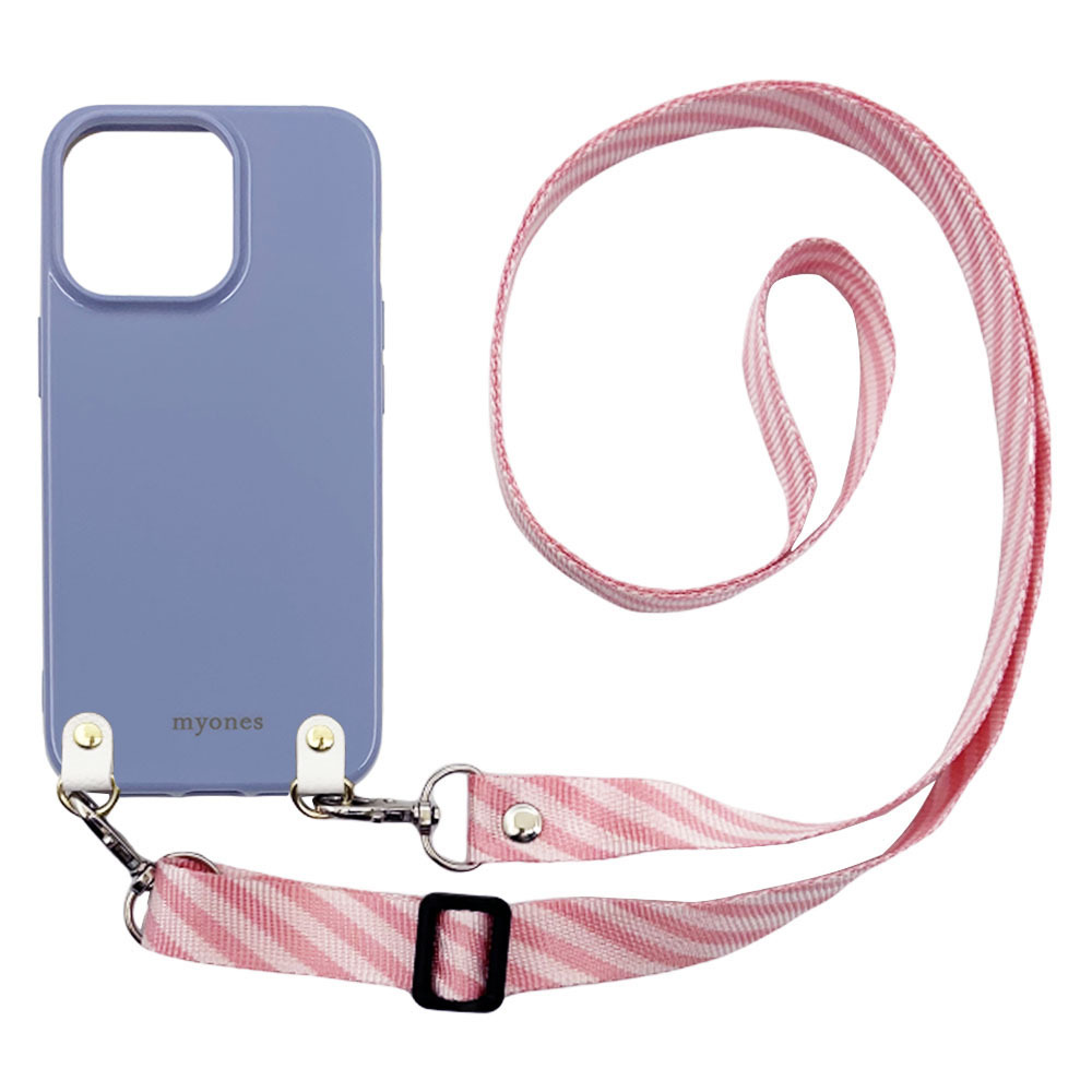 iPhone12 / iPhone12 Pro アイフォン12プロ(くすみブルー/ピンク)TPUケース ストラップ カバー 平型 肩掛け 斜めがけ かわいい