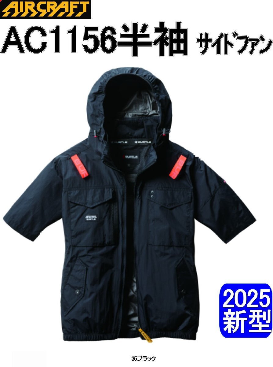バートル 2025最新 サイドファン AC1156 35.ブラック 半袖 単品 エアークラフト 空調服 BURTLE