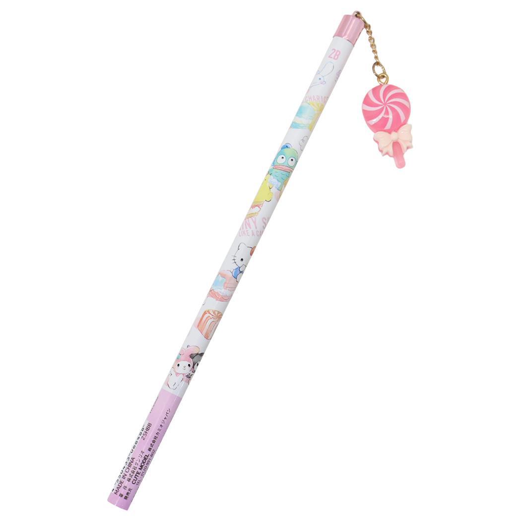 たくさんのスイーツとサンリオキャラクターのイラストがかわいい 大人気サンリオキャラクターズのキュートなステーショナリーシリーズこちらは定番人気アイテム[マスコット付き鉛筆]キャンディマスコットがゆらゆら揺れてとってもかわいいかわいい文房具いろいろあるのでお気に入りを揃えてくださいサイズ:直径約7.5x182mm素材:木、黒鉛、粘土(鉛筆)/エポキシレジン(マスコット)