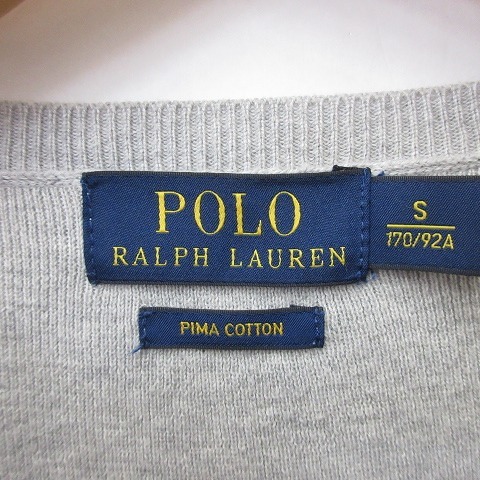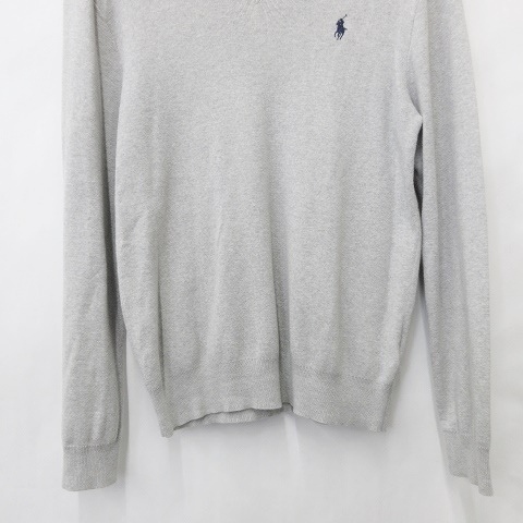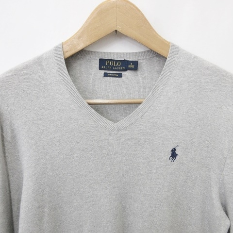 ポロ ラルフローレン POLO RALPH LAUREN セーター ニット 長袖 Vネック ロゴ 綿 コットン グレー S メンズ