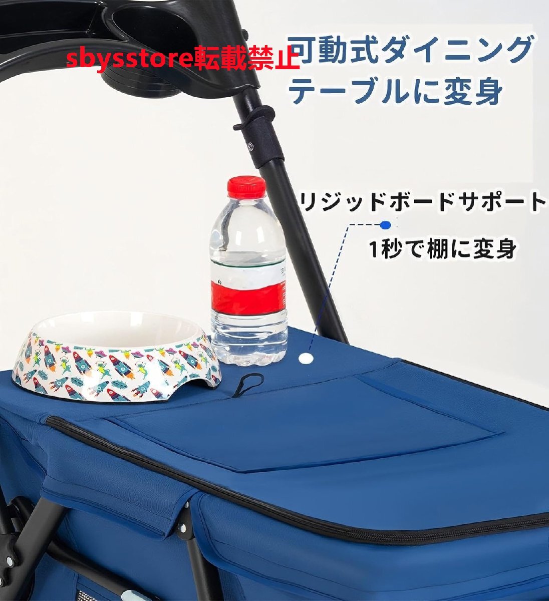 【素早く折り畳める 】ペットカートワンクリックで折りたたみ、車のトランクに入れることができます。持ち運びが簡単で、セルフドライブ、公園、ショッピング、病院、車や電車での旅行などに最適です。 上部にカップホルダーとトレイ、前面と背面にポケットが付いており、おもちゃやフード、ケア用品など様々なものを簡単に収納できます。