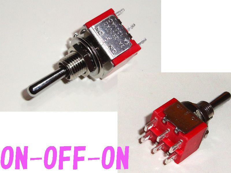 トグルスイッチ ON-OFF-ON タイプ 2回路2接点 中間OFF 中点オフのタイプ スイッチ 左・真ん中・右のポイントで止まる